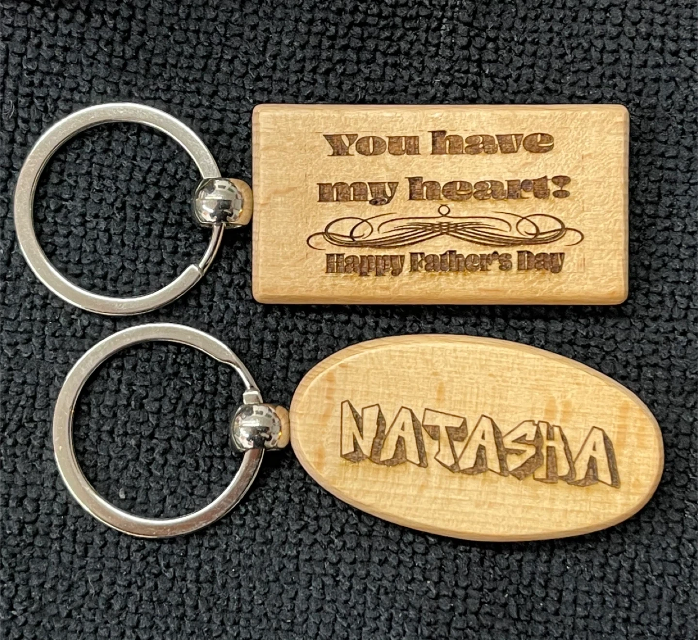 Handmade Wooden Laser Engraved Keychains - Personalized Designs