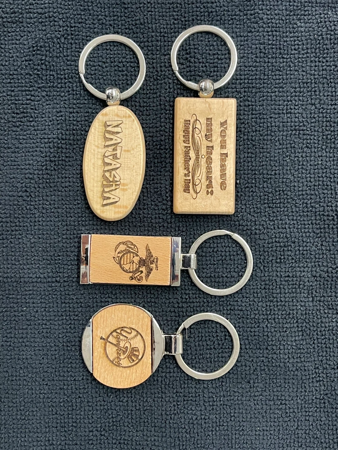 Selling a variety of handmade wooden keychains. Each one has a unique design customized to your liking.