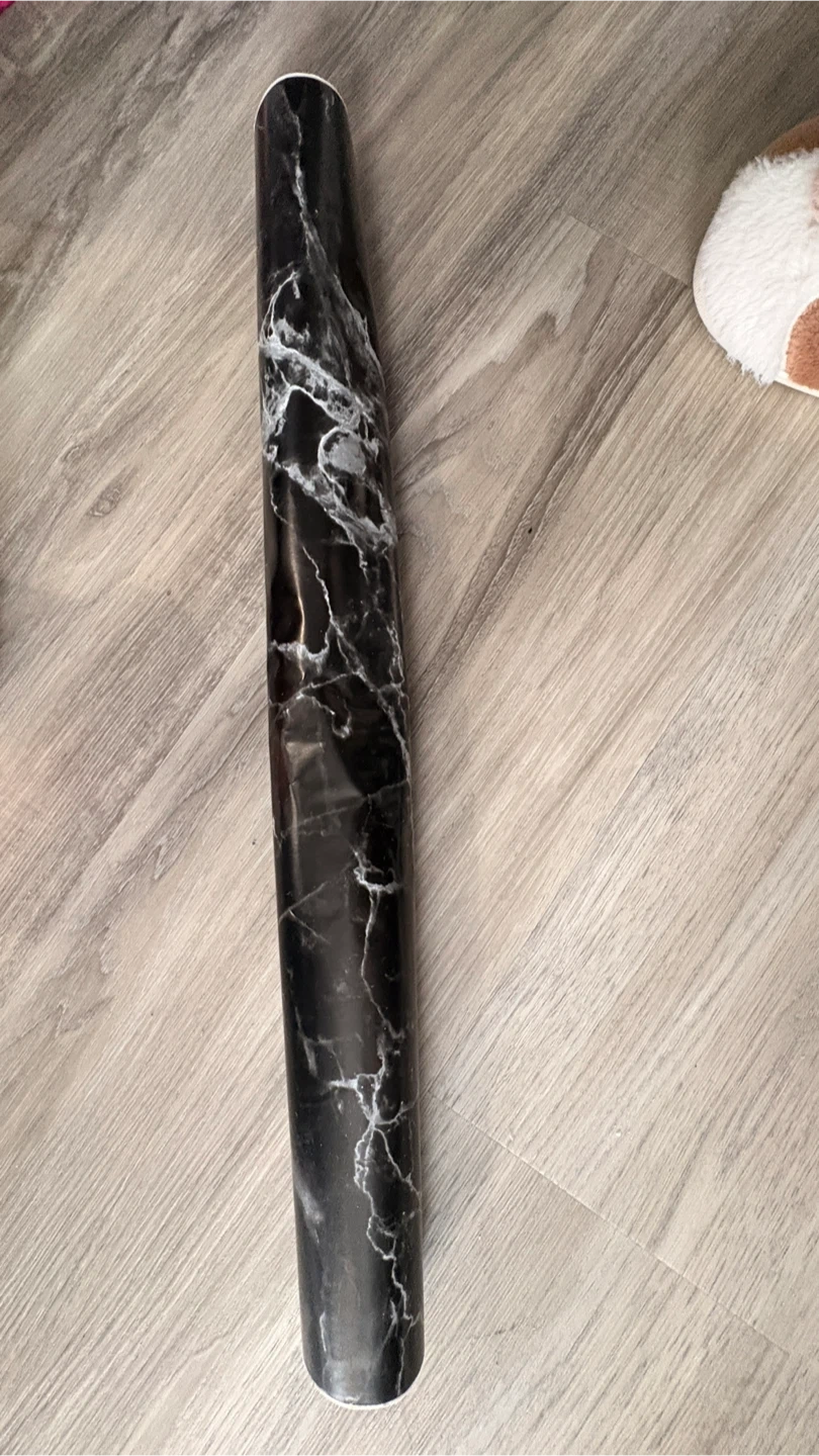 Here's a roll of black marble contact paper, perfect for giving your furniture or walls a quick and stylish makeover! It’s in great shape and ready to use for your next DIY project