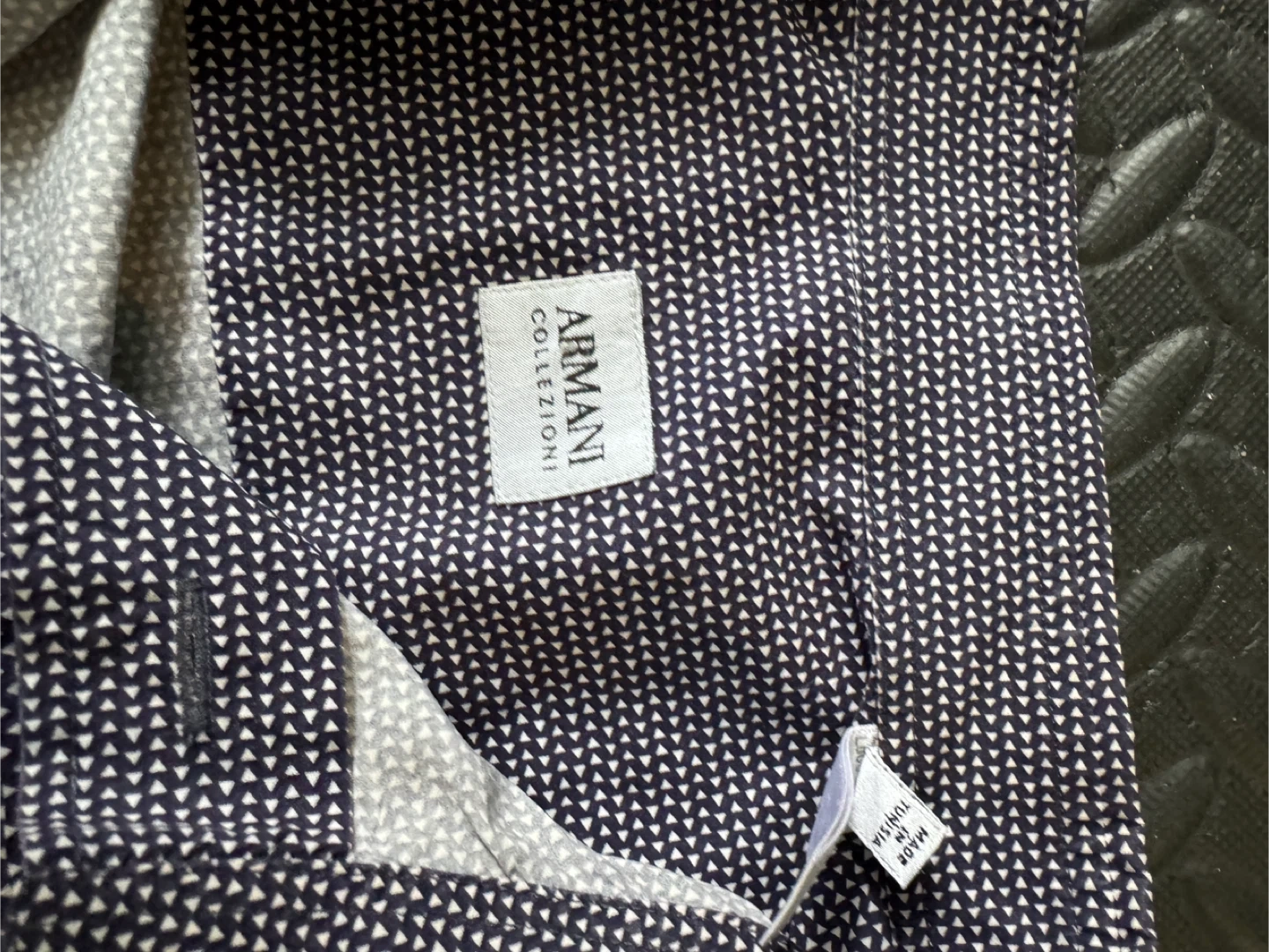 Selling an Armani long sleeve button-up shirt in size 39/15.5. The shirt features a stylish pattern and is made in Italy. It's in great condition and ready for a new wardrobe!