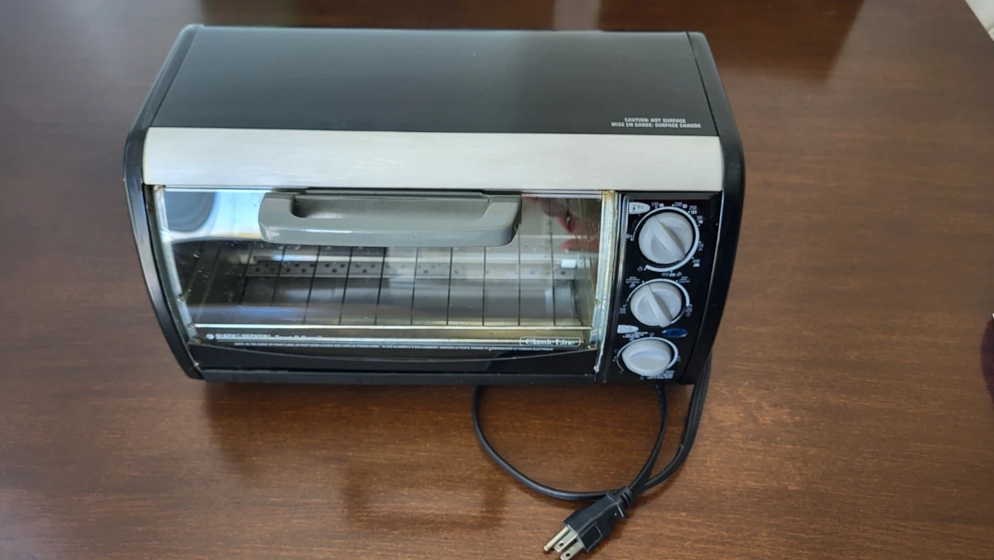 Selling a Black+Decker toaster oven! It's in good working condition and ready to help with your cooking needs. Perfect for small kitchens or quick meals. Features adjustable temperature and timer controls.