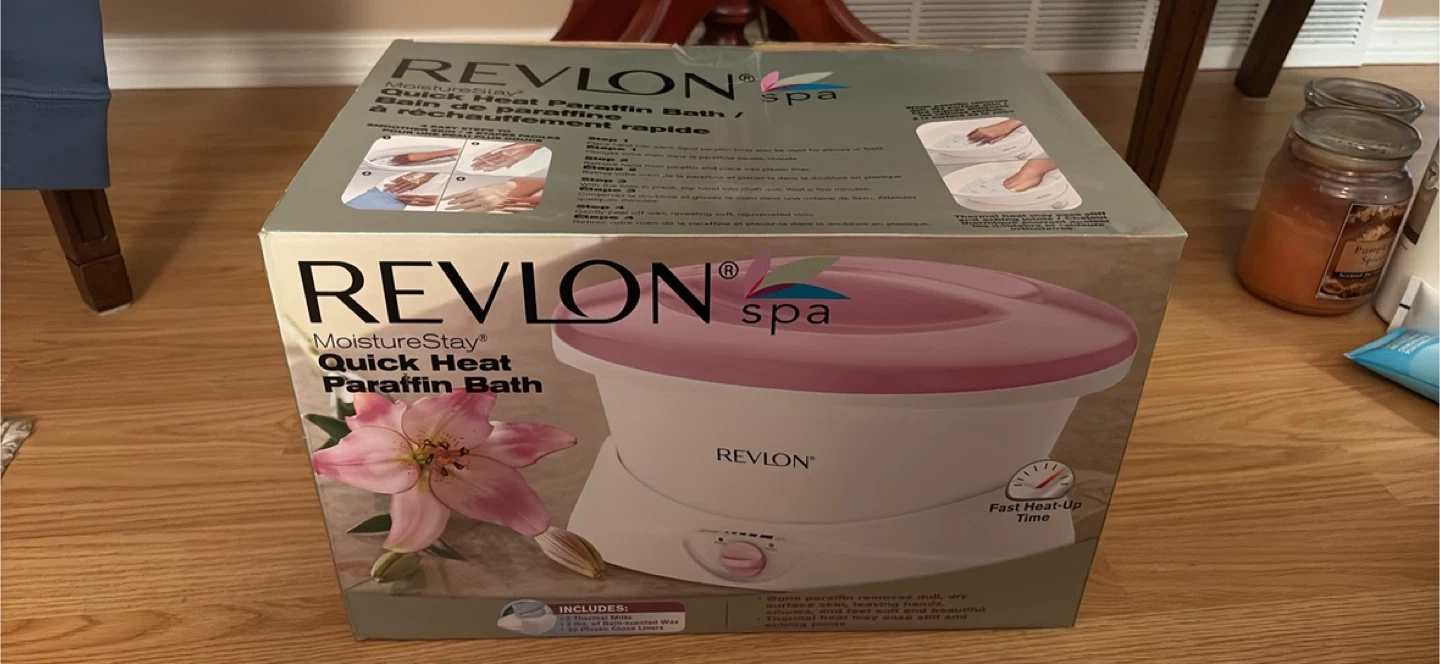 Selling a Revlon MoistureStay Quick Heat Paraffin Bath. This includes thermal mitts, 2 lbs of rain-scented wax, and 20 plastic glove liners. It features a fast heat-up time, so you can enjoy warm paraffin that removes dull, dry surface skin, leaving hands, elbows, and feet soft and beautiful. Thermal heat may ease stiff and aching joints