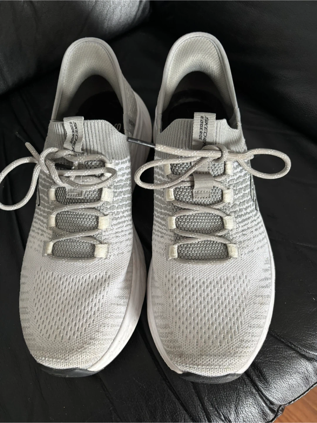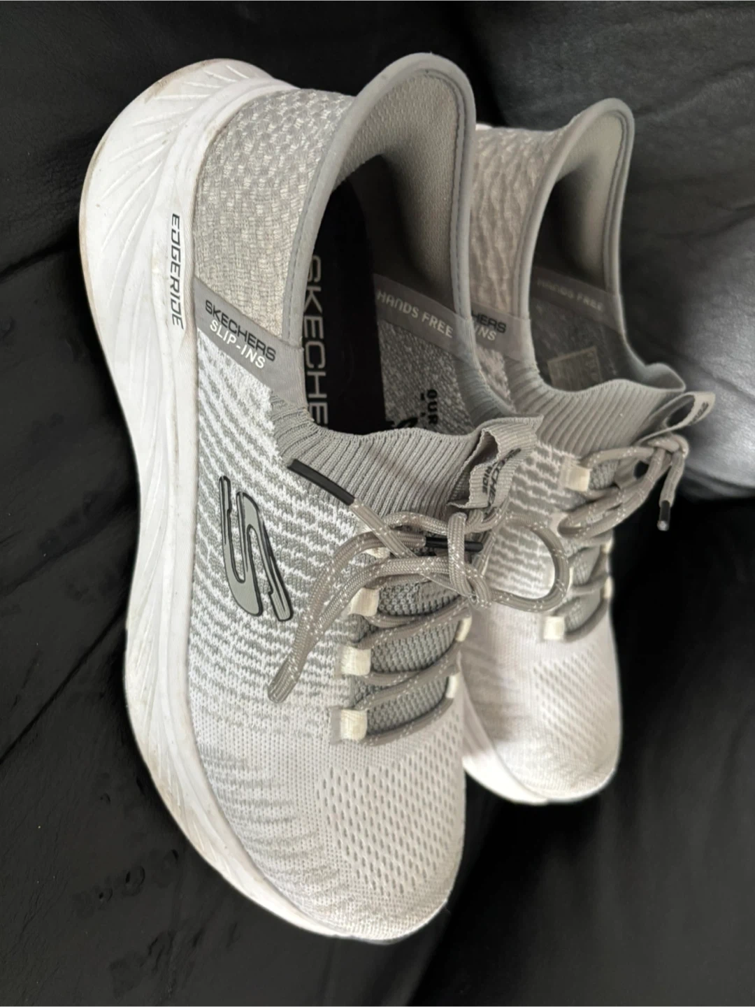 Skechers Slip-ins Relaxed Fit: Edge Ride sneakers in a men's size 9. They feature Skechers Air-Cooled Memory Foam for added comfort and a hands-free design for easy wear. Like new