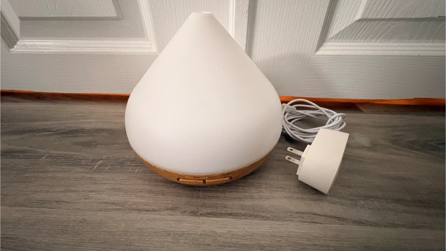 Selling a lovely aroma diffuser! It features a white, teardrop-shaped top and a wood-look base. Comes with its power adapter so you can get diffusing right away