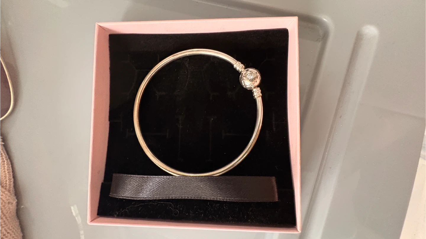 Selling a lovely Pandora bangle bracelet! It comes with its original box, making it perfect for gifting or safekeeping. The bracelet is in great condition and ready to add some sparkle to your wrist
