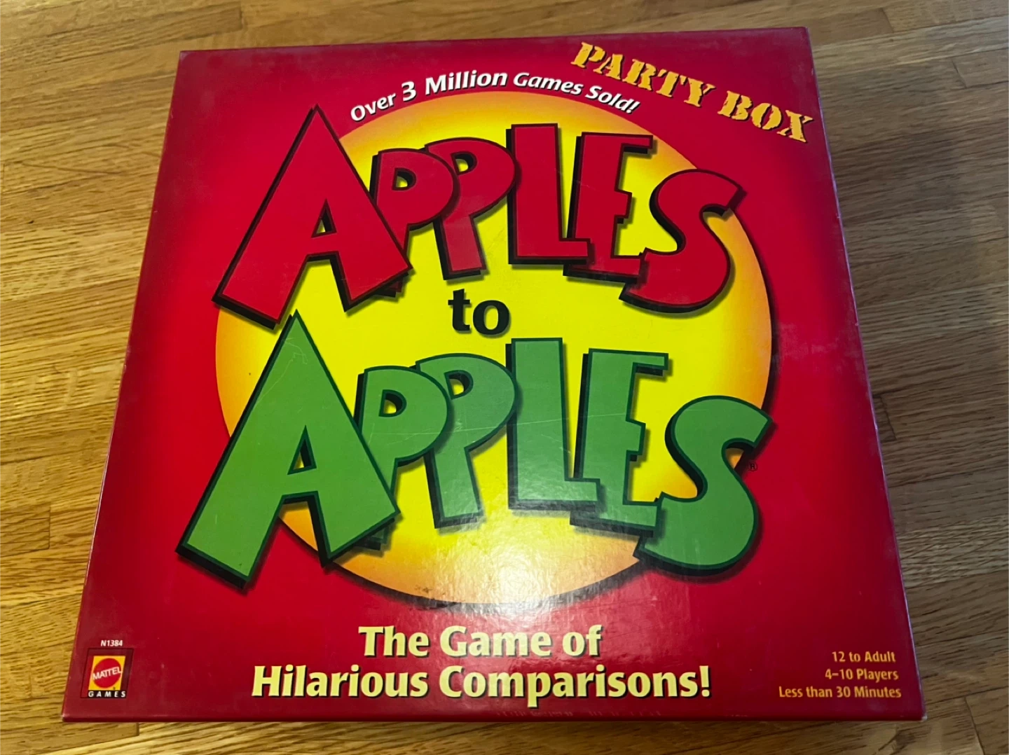 Selling the Apples to Apples Party Box game! It's the game of hilarious comparisons, perfect for 4-10 players, ages 12 and up. Includes red apple cards and green apple cards for tons of fun.