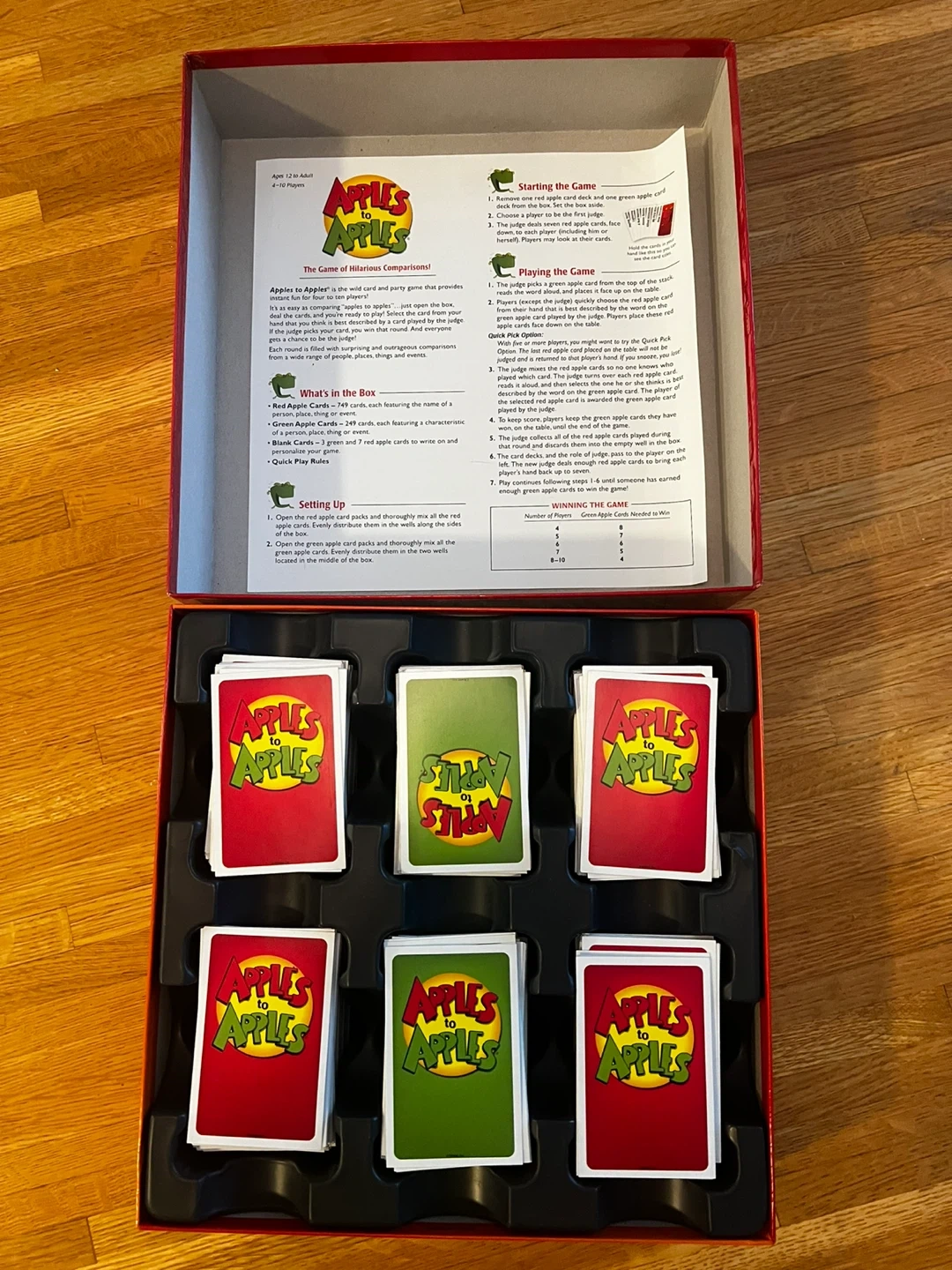 Selling the Apples to Apples Party Box game! It's the game of hilarious comparisons, perfect for 4-10 players, ages 12 and up. Includes red apple cards and green apple cards for tons of fun.
