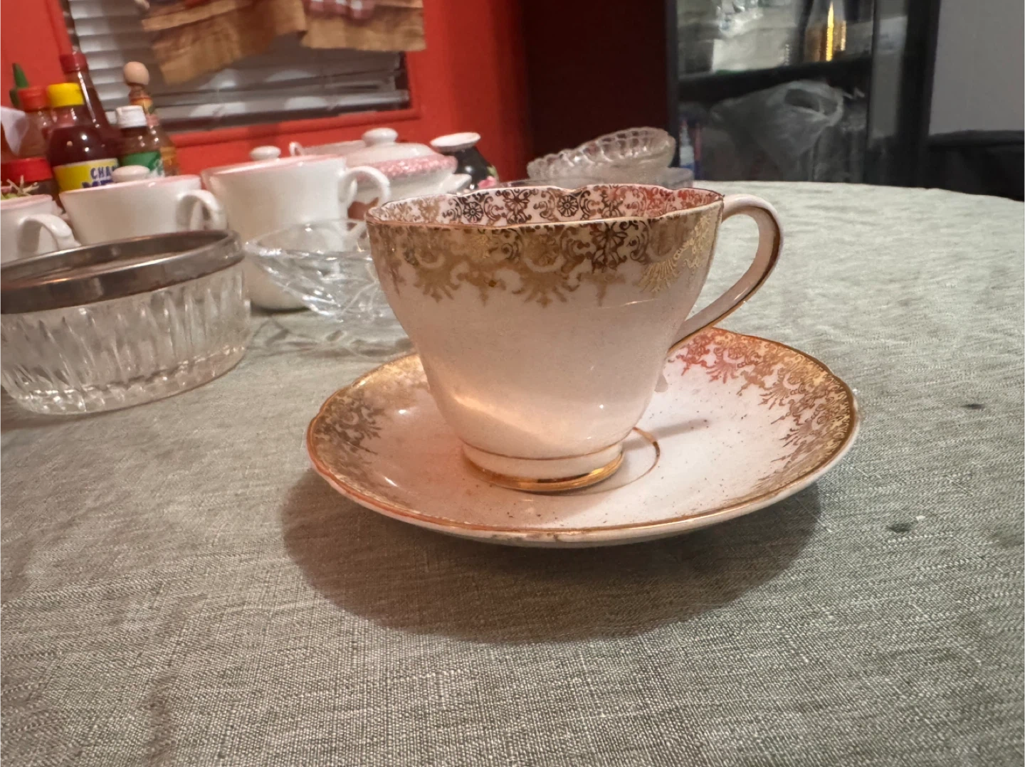Buy & SellSalisbury Teacup and Saucer SetSalisbury Teacup and Saucer Set$8This is a lovely Salisbury teacup and saucer set with a delicate gold pattern. Perfect for tea time or displayWHERE TO MEETShorehavenView MapSELLERverifiedBrendaClason Point1072 reviews0 chats·0 favorites·9 viewsSEND CHAT TO SELLERHi Brenda! I’m interested in your listing.Hi Brenda! I’m interested in your listing.Get the Karrot app to chatSign In to chat