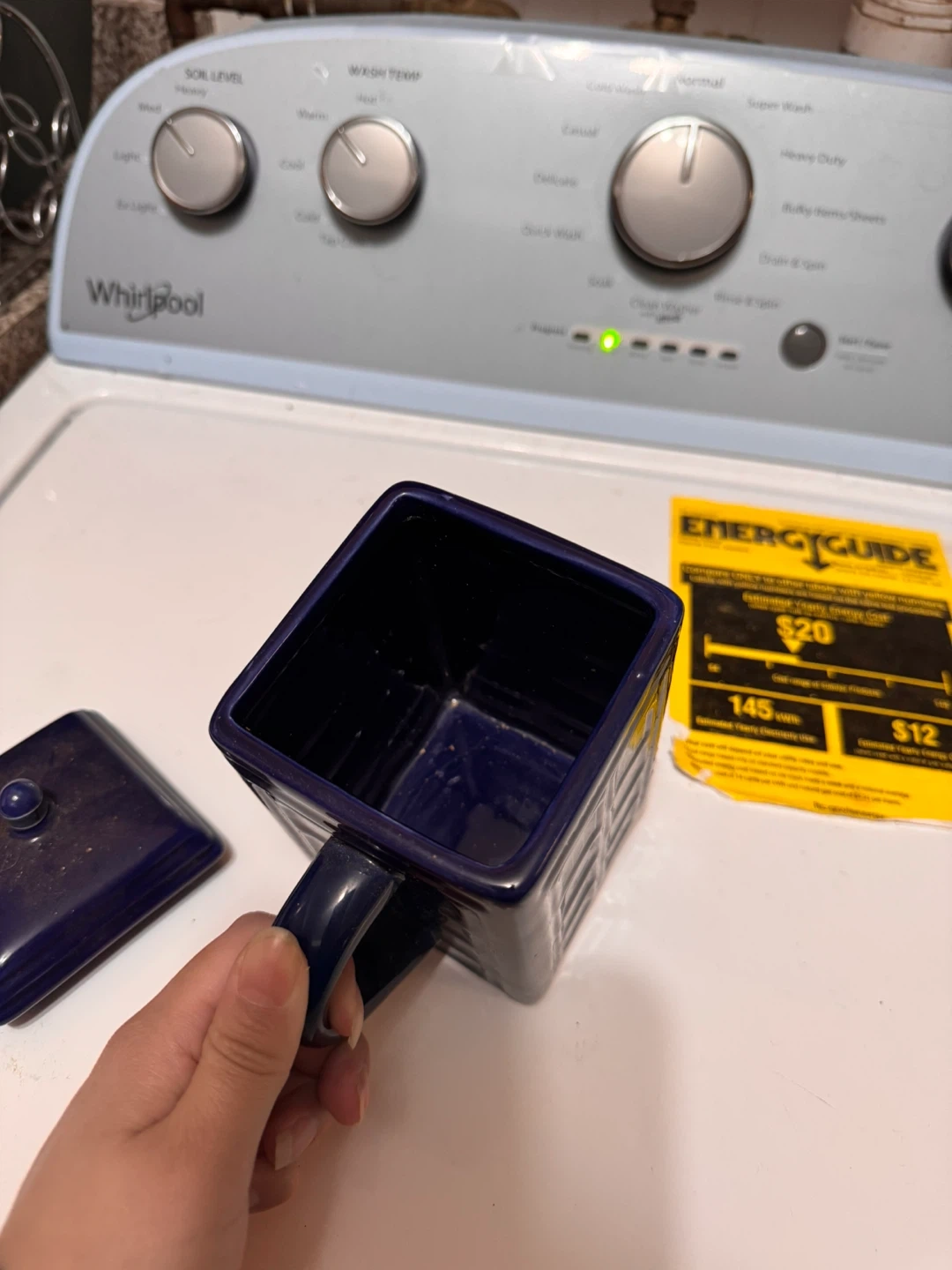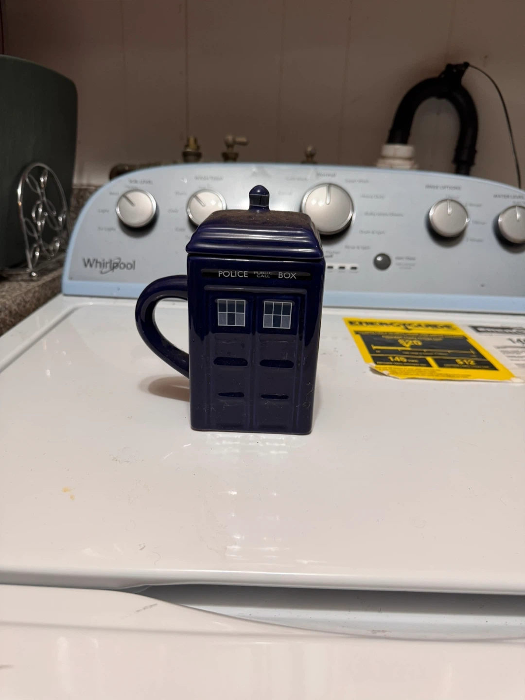 Selling a Doctor Who Tardis mug with a lid. It's in good condition and ready for a new home. Perfect for any Doctor Who fan!