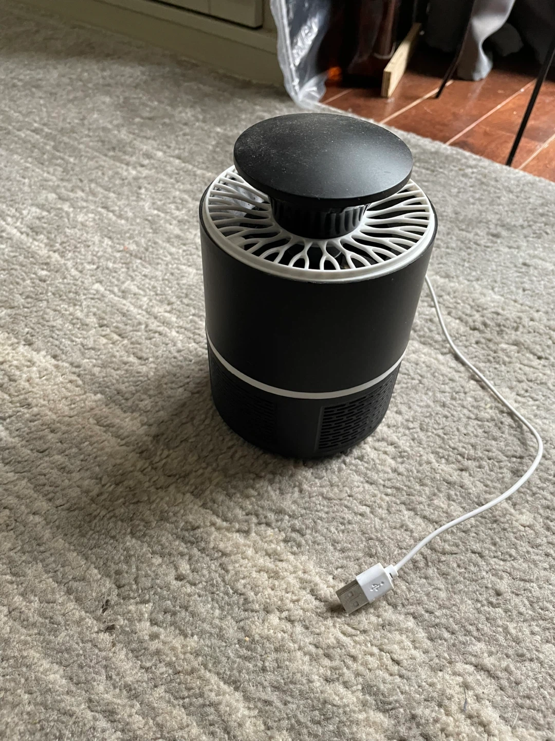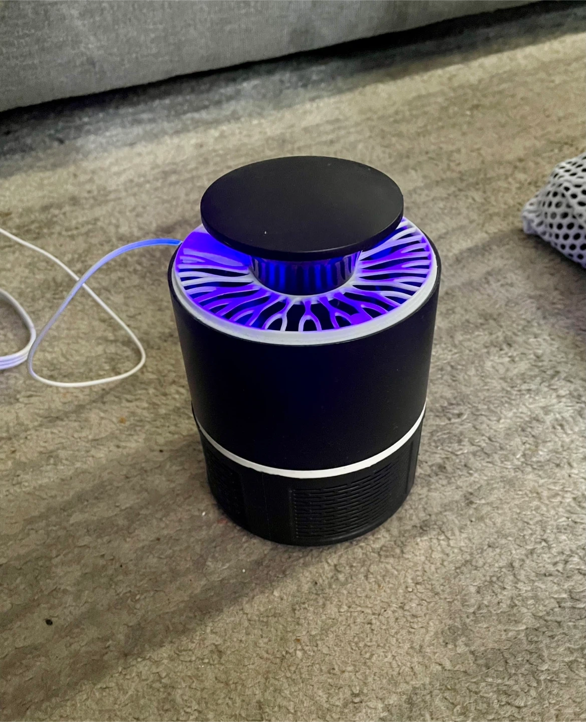 Selling a mosquito lamp. It's black and comes with a USB cable for power. It uses a UV light to attract mosquitoes, fruit flies and then traps them. Great for keeping those pesky bugs away!