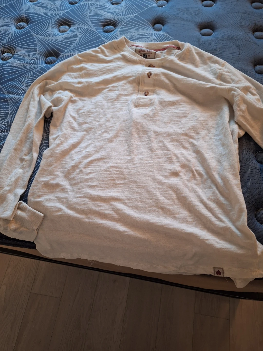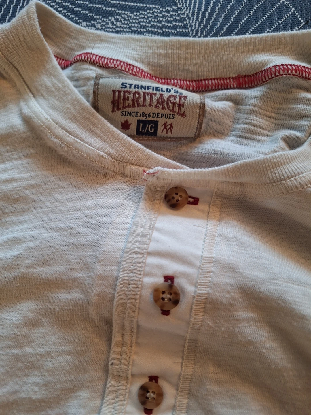 Selling a Stanfield's Heritage Henley shirt in size L/G (XXL women's) It's in great condition and features a classic design with button detailing. Perfect for casual wear!