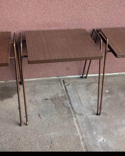 Selling a set of three vintage nesting tables. They have a unique design and are perfect for adding a retro touch to your living space. The tables are in good condition and ready to be used in your home!