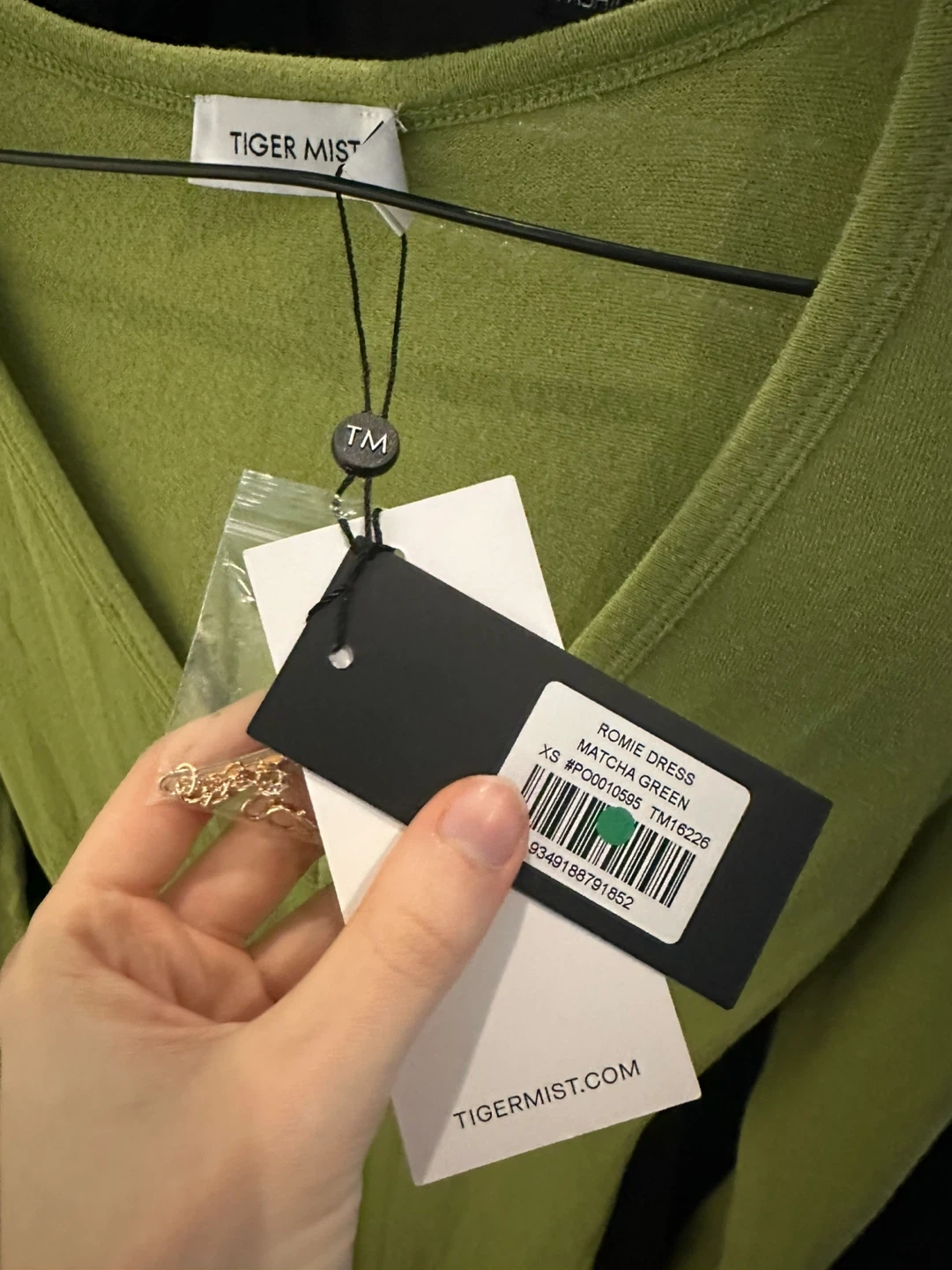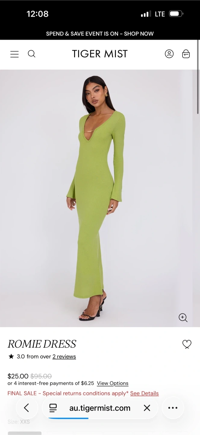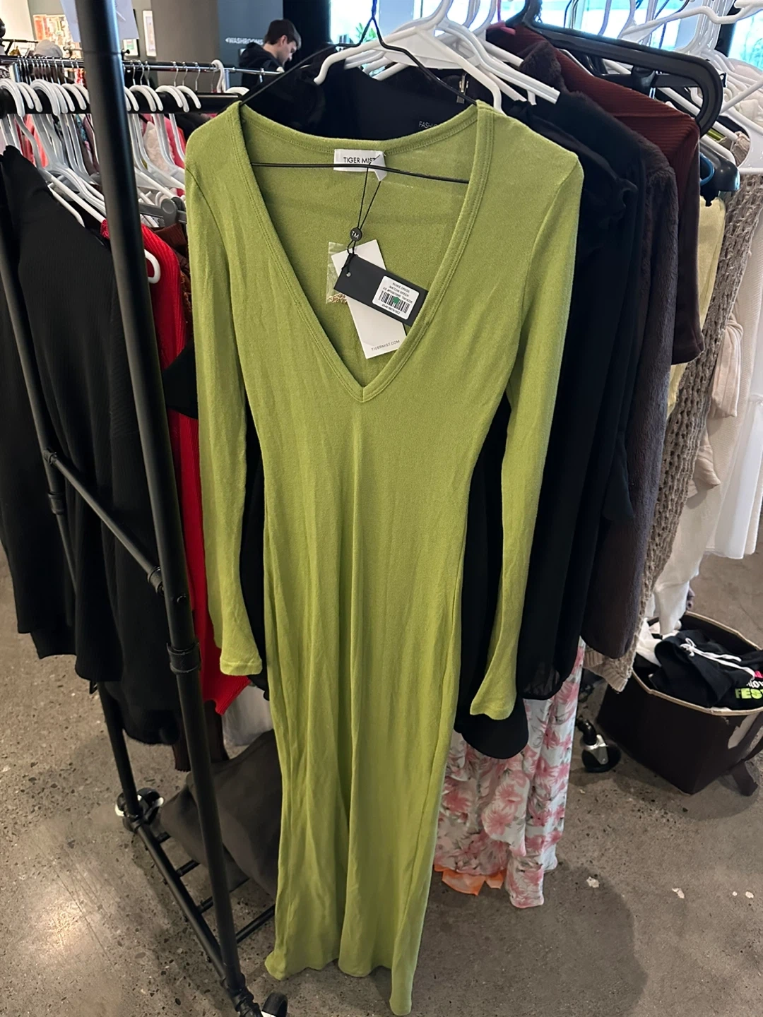 Selling a Tiger Mist Romie Dress in matcha green, size XS! It's in great condition. The dress features a V-neck and long sleeves. It was originally bought for $95.