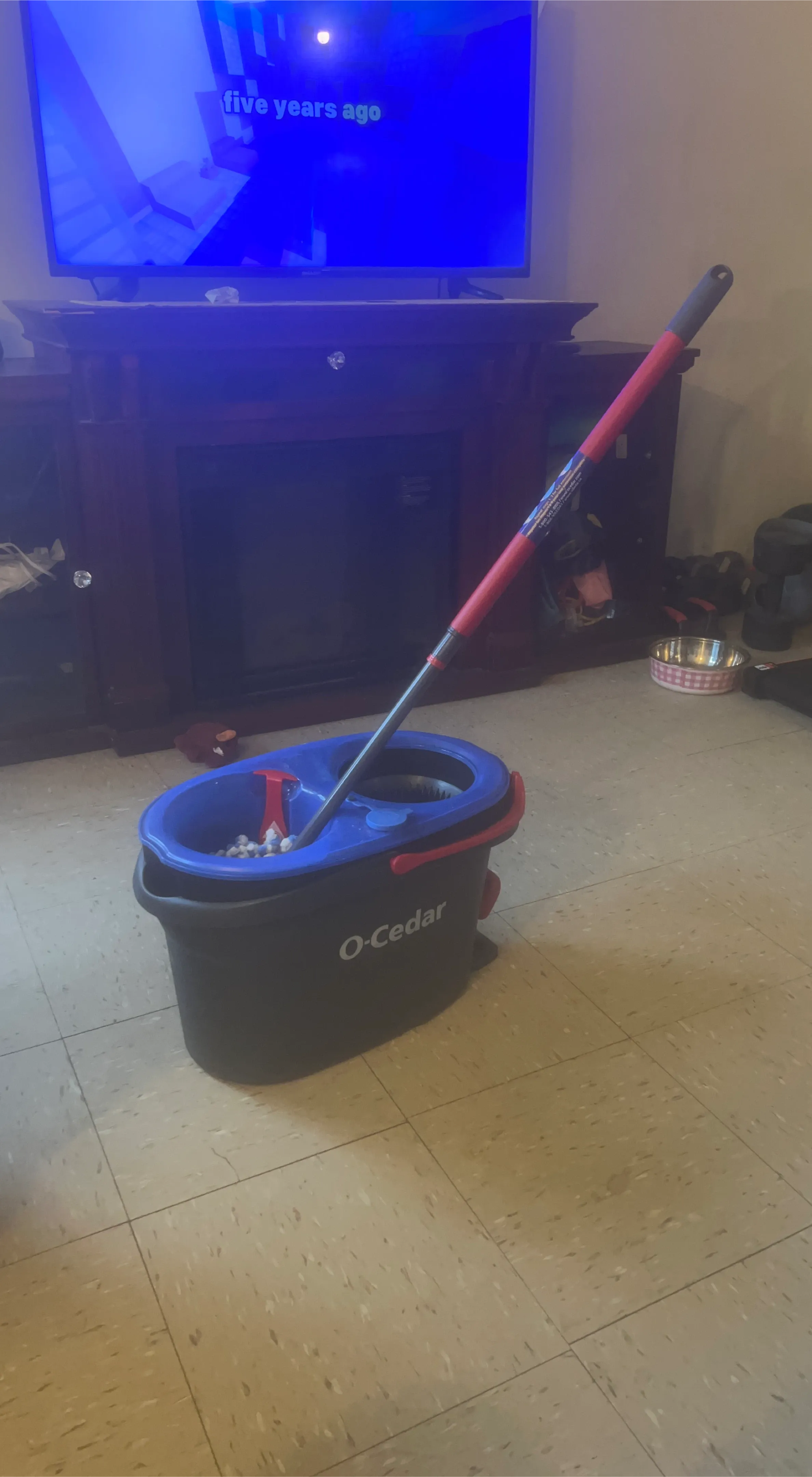 Selling an O-Cedar EasyWring Spin Mop with Bucket. It's in good condition and ready to help keep your floors sparkling clean!