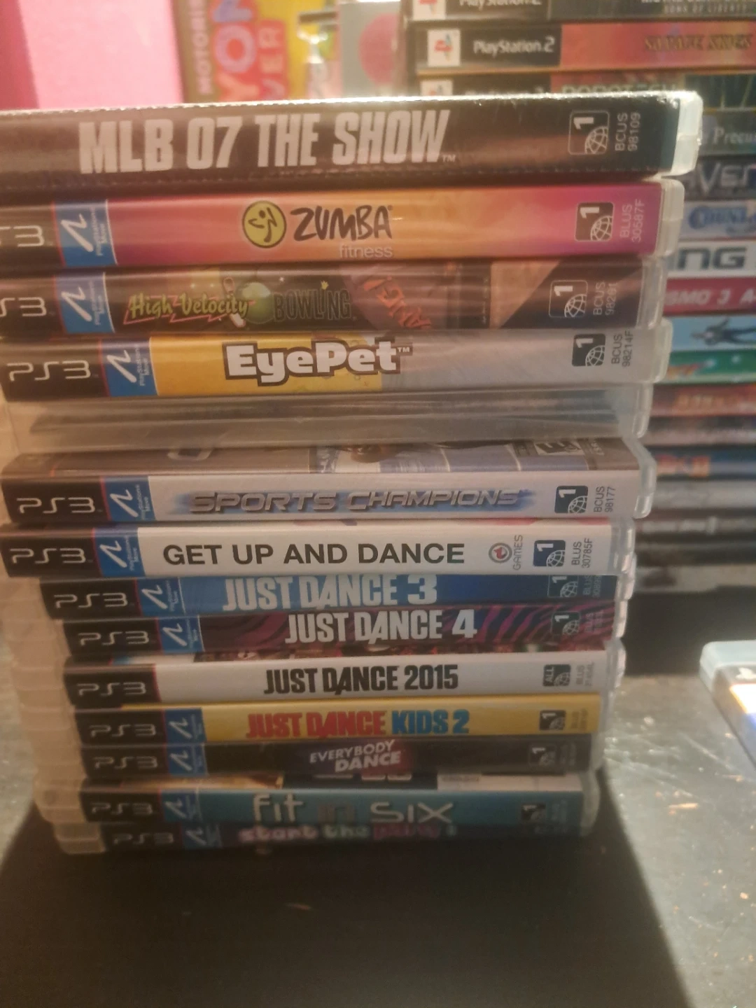 - A variety of PS3 games like MLB 07 The Show, Zumba Fitness, EyePet, Just Dance, and more