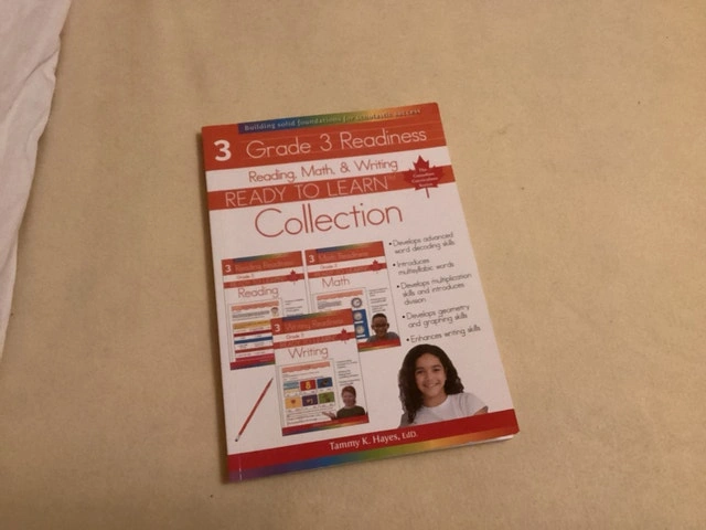 Get your child ready for Grade 3 with this Reading, Math & Writing workbook collection! This resource is designed to build solid foundations for scholastic success, developing advanced word decoding skills, introducing multisyllabic words, developing multiplication skills, introducing division, developing geometry and graphing skills, and enhancing writing skills. Key Features: * Comprehensive coverage of Grade 3 subjects * Focus on building essential skills * Enhances overall academic readiness This workbook has been gently and is in good condition, ready to support your child's learning journey. Why not give your little scholar a head start? If the ad is up, it's available and ready for a new home! A fair price for this collection is around $10.