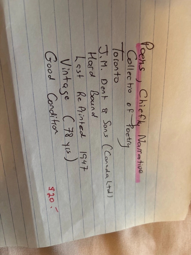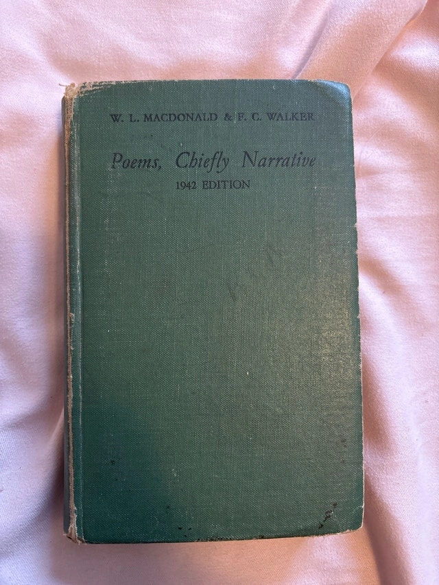 I'm offering a 1942 edition of 'Poems, Chiefly Narrative' by W. L. Macdonald & F. C. Walker, a vintage collection of poetry, reprinted in 1947 by J.M. Dent & Sons (Canada) Ltd. in Toronto and bound in hardcover. This book, a piece of literary history, contains a selection of narrative poems. It's a tangible piece of the past, perfect for collectors or enthusiasts of classic literature. While this volume shows its age, it remains a captivating glimpse into the poetic tastes of a bygone era.