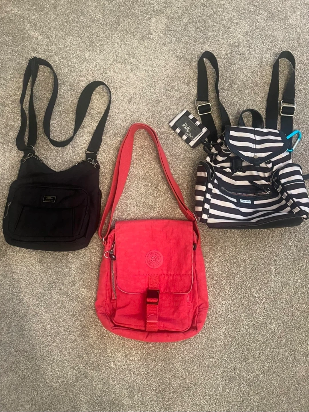 Kipling crossbody,Roots crossbody, Tyler Rodan backpack