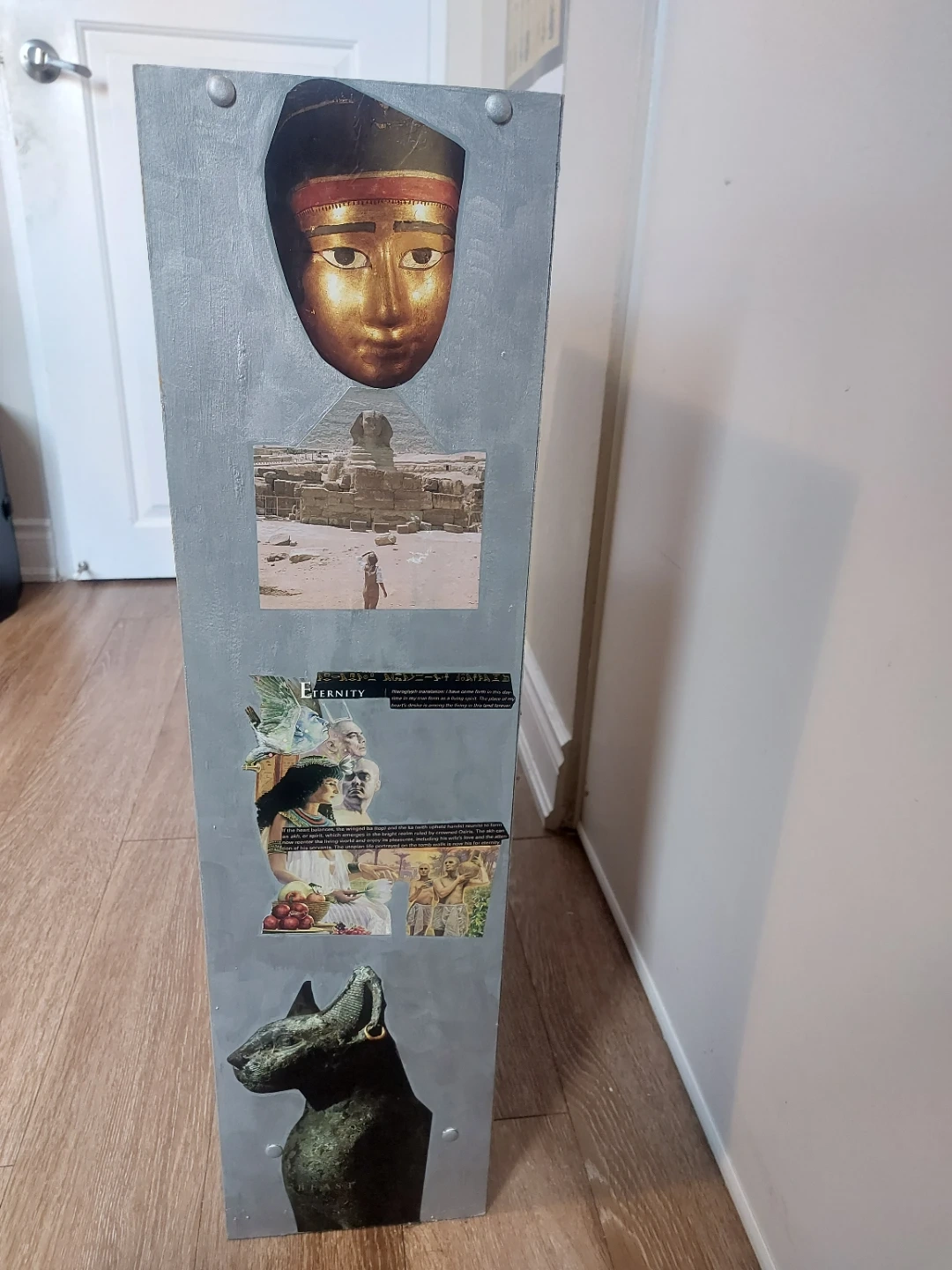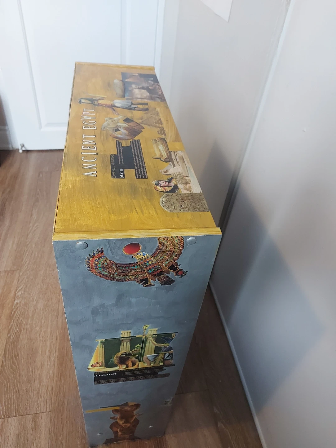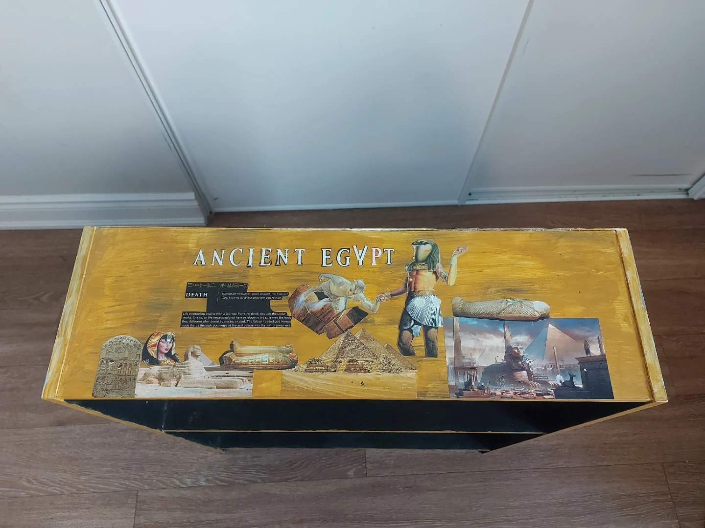 This is a custom made Ancient Egypt Book Shelf. It has a protective gloss coating on it to protect the finish. It can be used as functional furniture piece. (Book Shelf) Asking for $100. Delivery is possible for .70 cents per km if you live within a 40 km radius of East Hamilton.