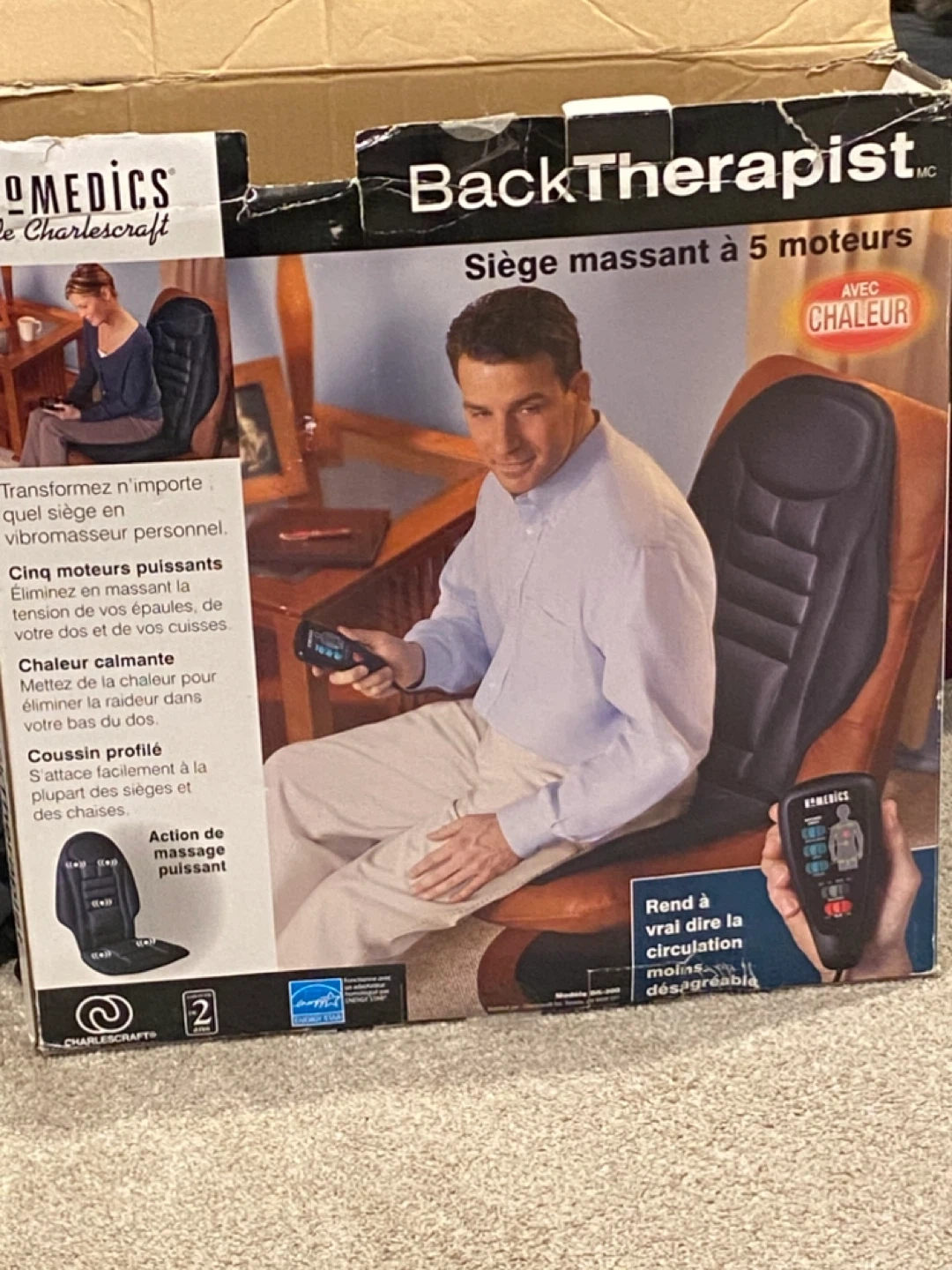 Selling a Homedics BackTherapist 5-motor seat massager! It comes with the instruction manual and car adapter. This turns any seat into a personal vibrating massager. It has 5 powerful motors that eliminate tension in your shoulders, back, and thighs. It also has a soothing heat to relieve tension in your lower back