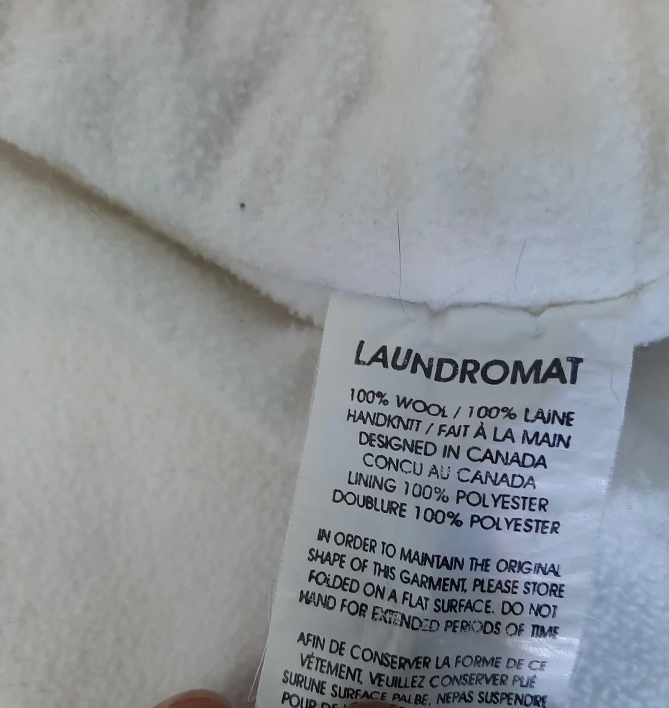 Cozy up in this Laundromat wool knit hooded jacket! It's a beautiful cream colour and features a comfortable hood and front pockets. Perfect for those chilly Canadian evenings