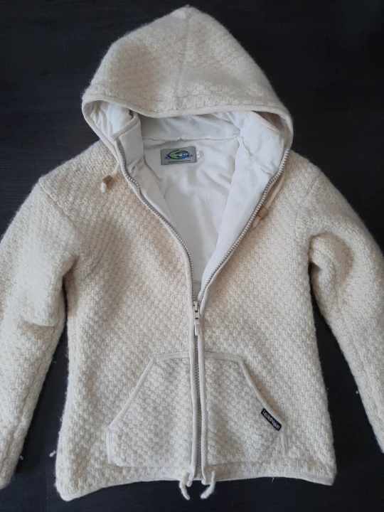Cozy up in this Laundromat wool knit hooded jacket! It's a beautiful cream colour and features a comfortable hood and front pockets. Perfect for those chilly Canadian evenings