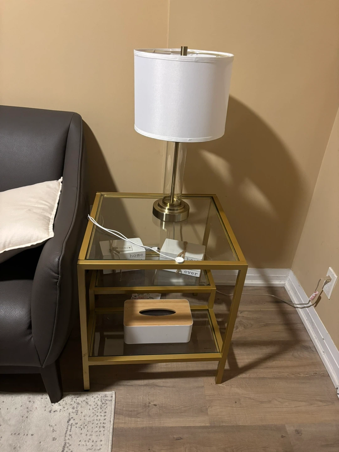 Gold Metal and Tempered Glass Side Table
