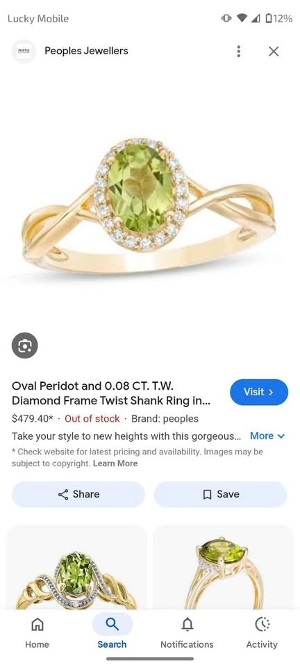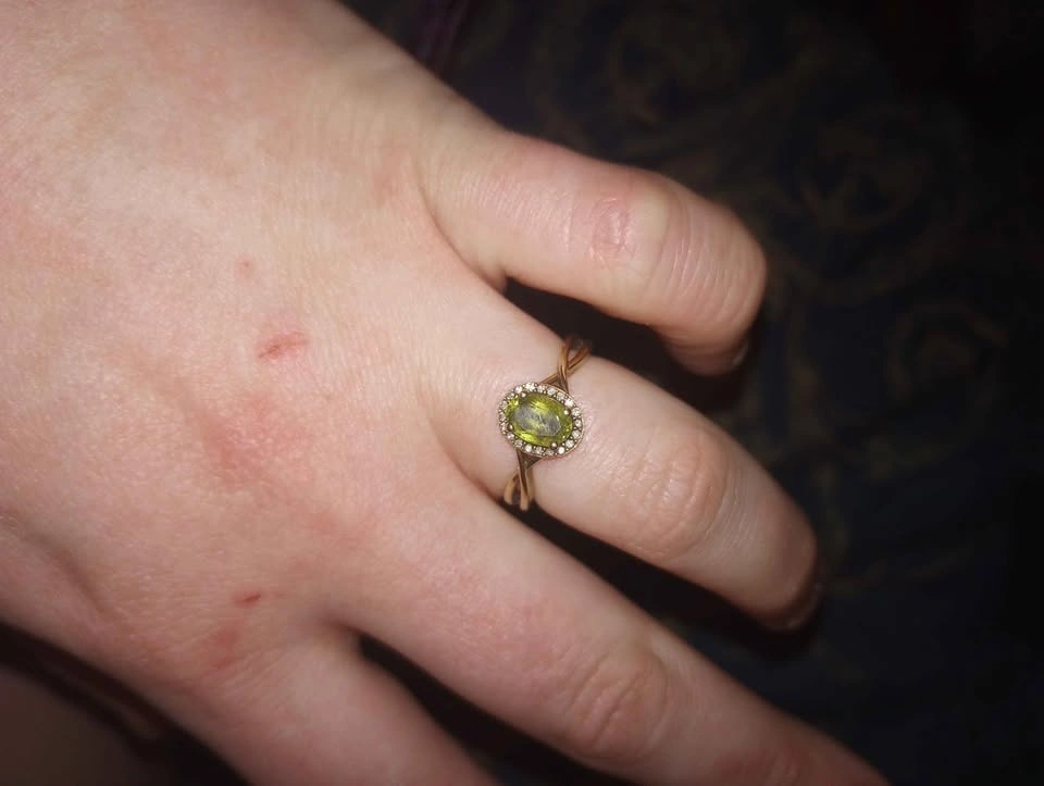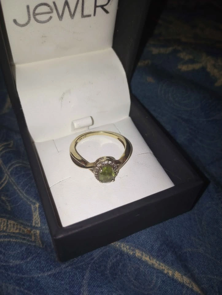 10k yellow gold ring with peridot stone and diamond frame size 7