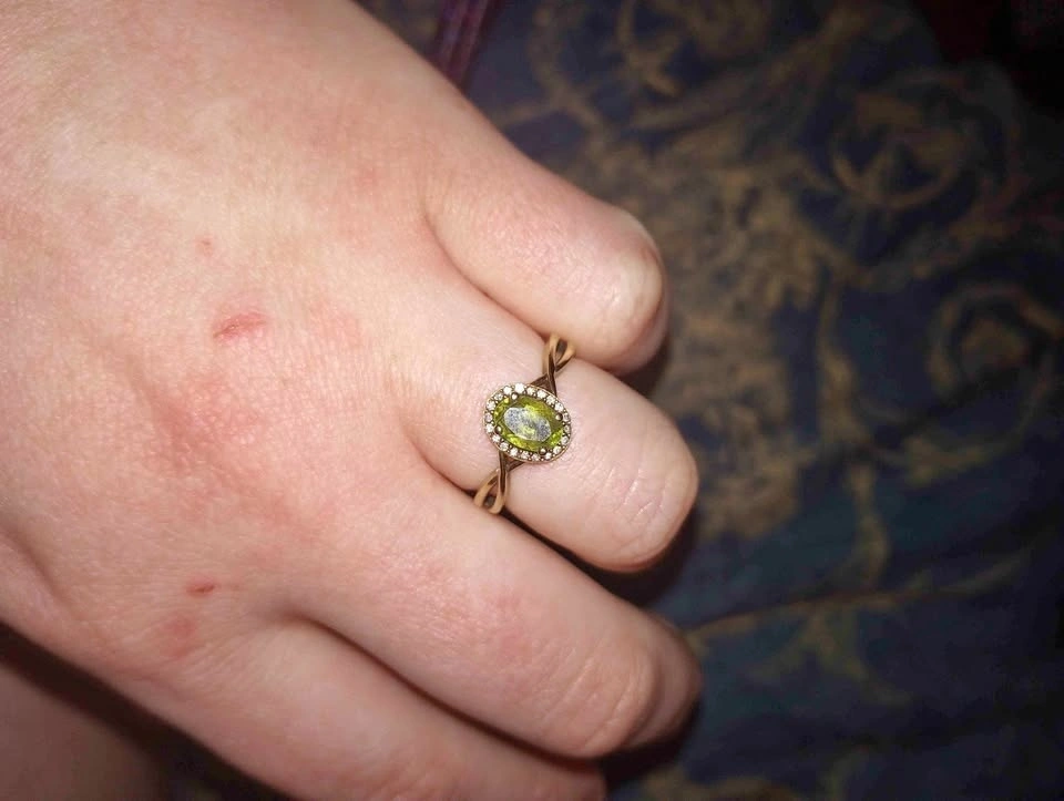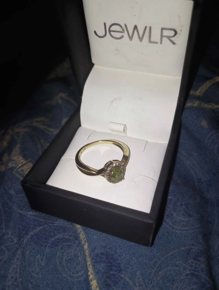 10k yellow gold ring with peridot stone and diamond frame size 7