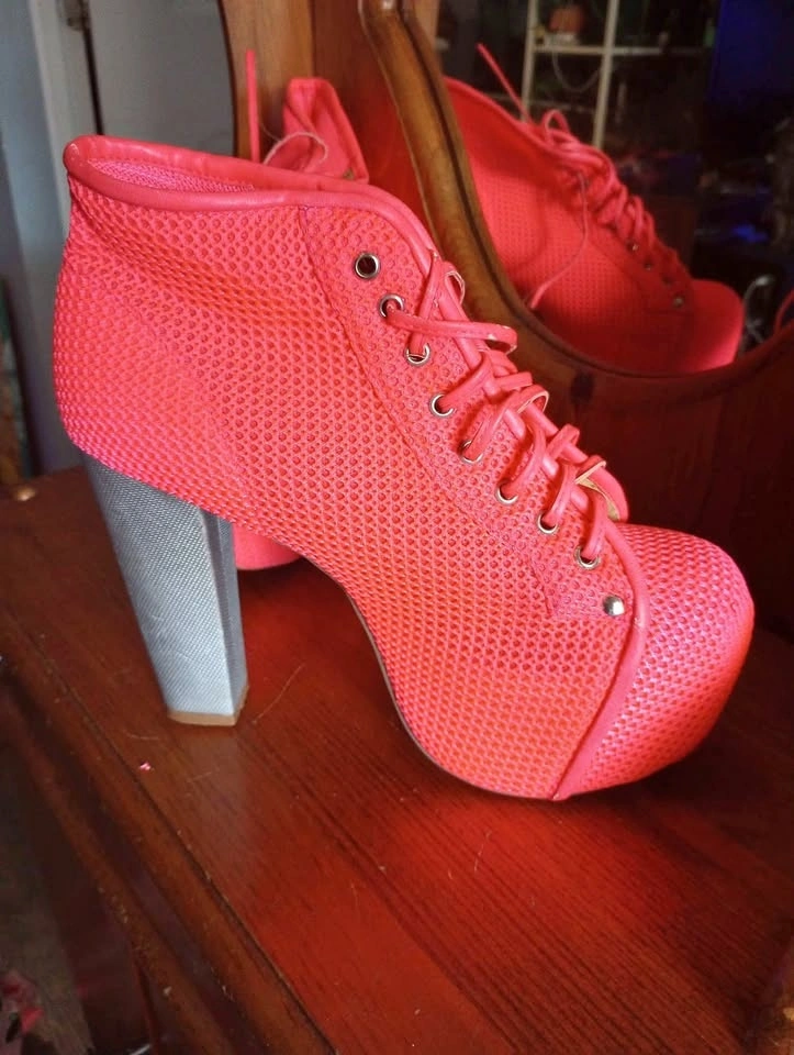 Buy & SellSize 9M pink Jeffery Campbell heelsSize 9M pink Jeffery Campbell heels$20They have some scuffs but they're in great shape. I am a size 10 and squeezed into these for photoshoots.WHERE TO MEETCheck LocationView MapSELLERAliciaCrown Point E150 reviews1 chats·2 favorites·9 viewsSEND CHAT TO SELLERHi Alicia! I’m interested in your listing.Hi Alicia! I’m interested in your listing.Get the Karrot app to chatSign In to chat