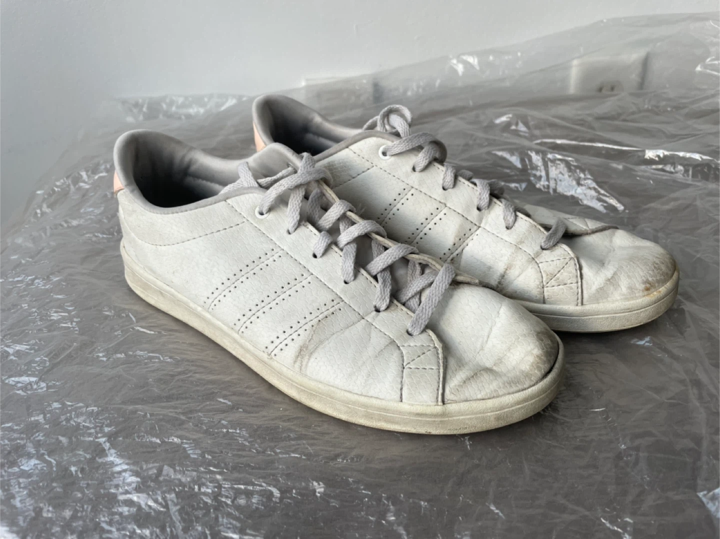 1. Adidas leather- scuffed
