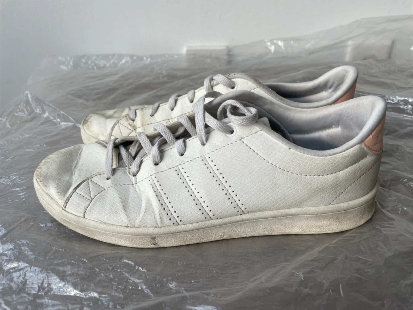 1. Adidas leather- scuffed