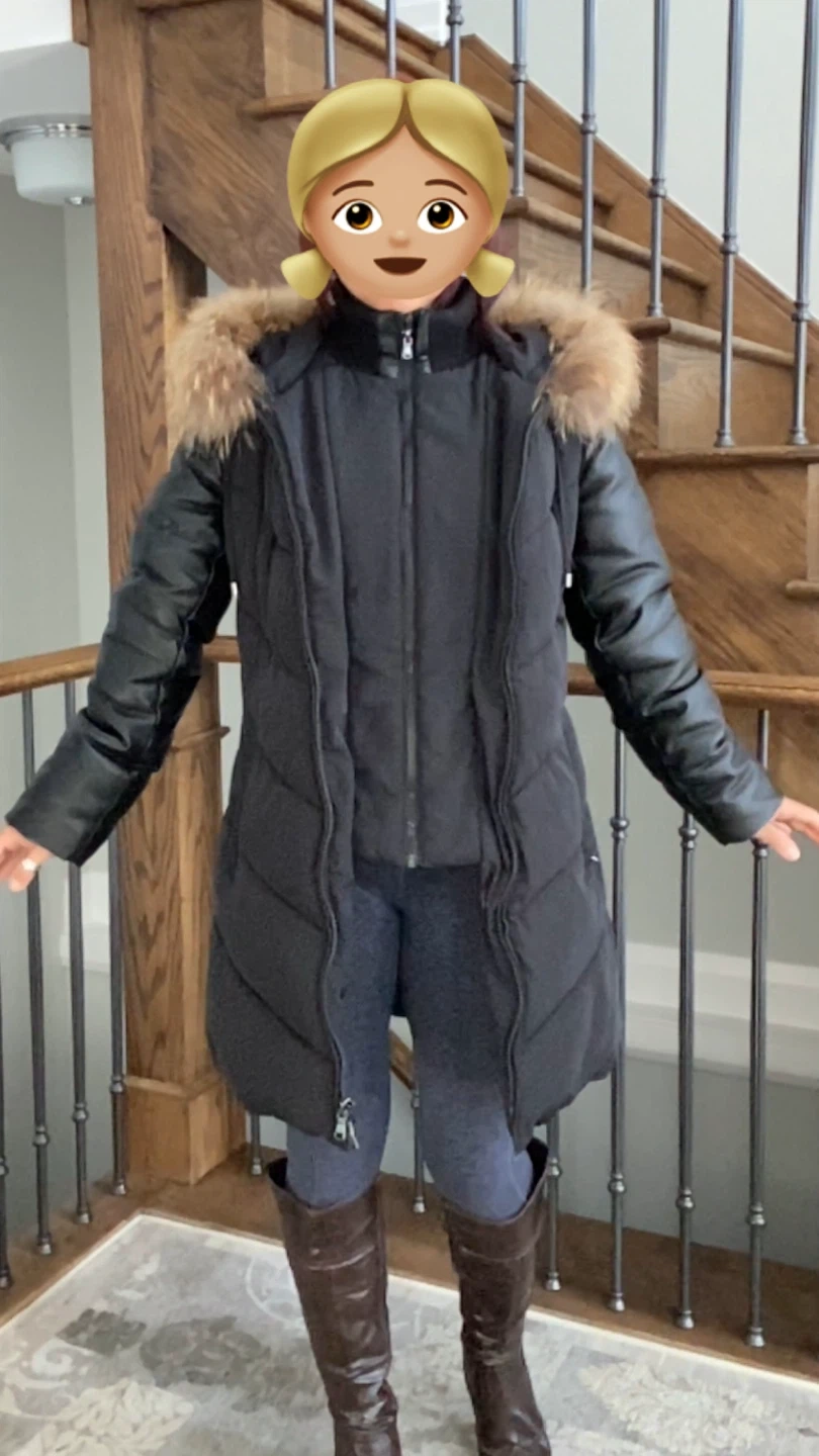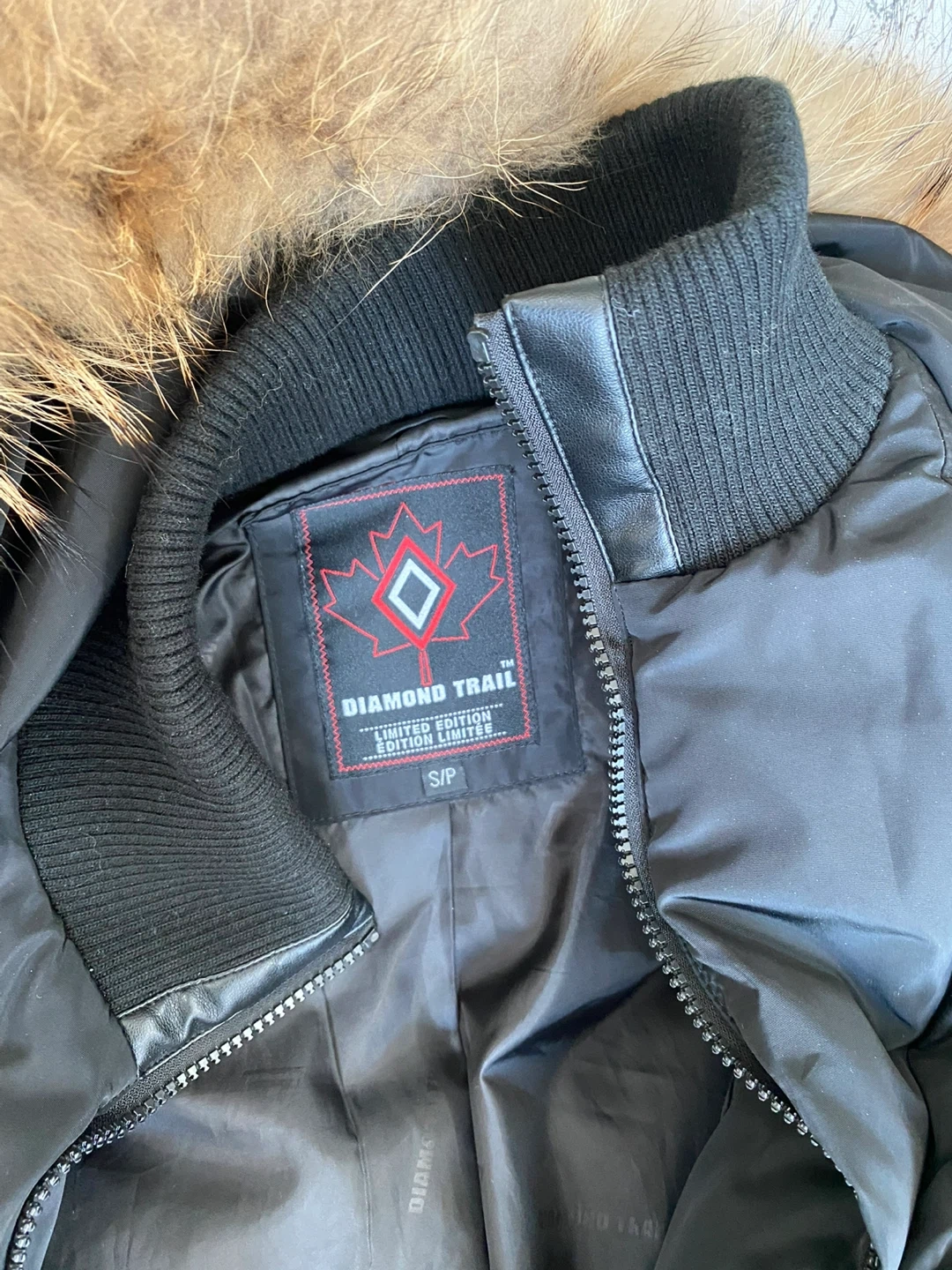 Selling a Diamond Trail winter coat in size S/P. It's a stylish black colour with a natural-fur hood. Perfect for keeping warm during the colder months!