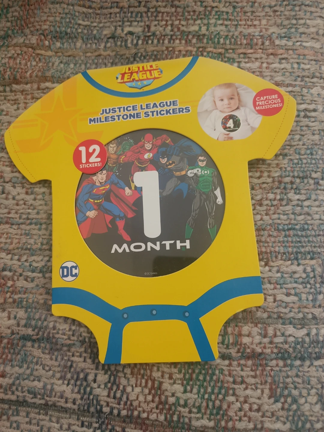 New Justice League Milestone Stickers to capture precious moments! Includes 12 stickers for each month of baby's first year