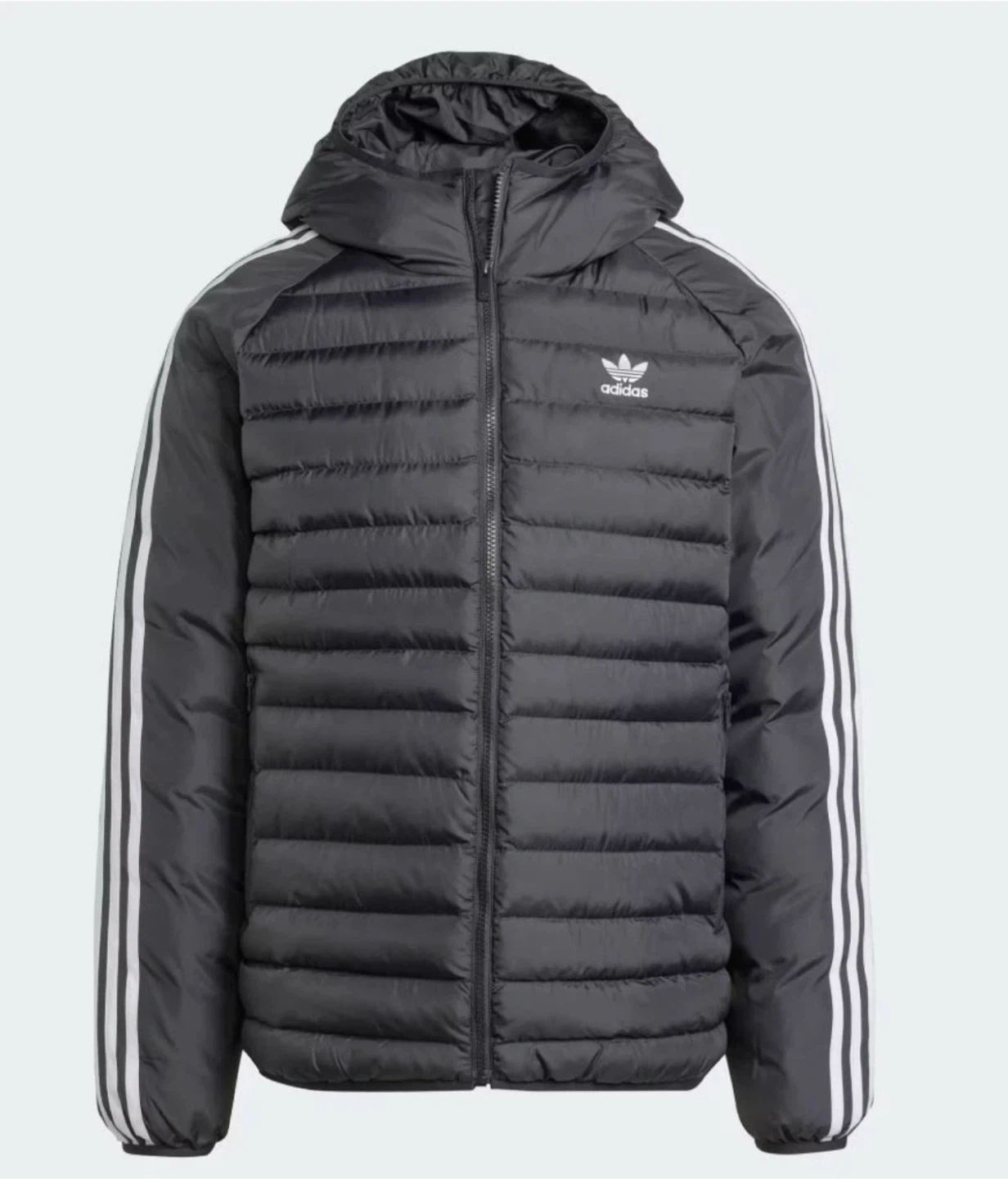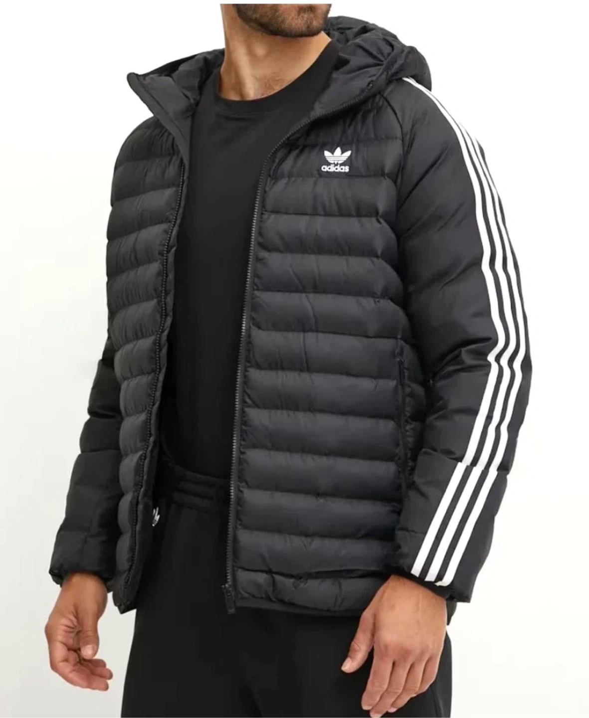 Selling an Adidas Originals Pad Hooded Jacket in black and white. It's a size L. This jacket is perfect for staying warm and stylish!