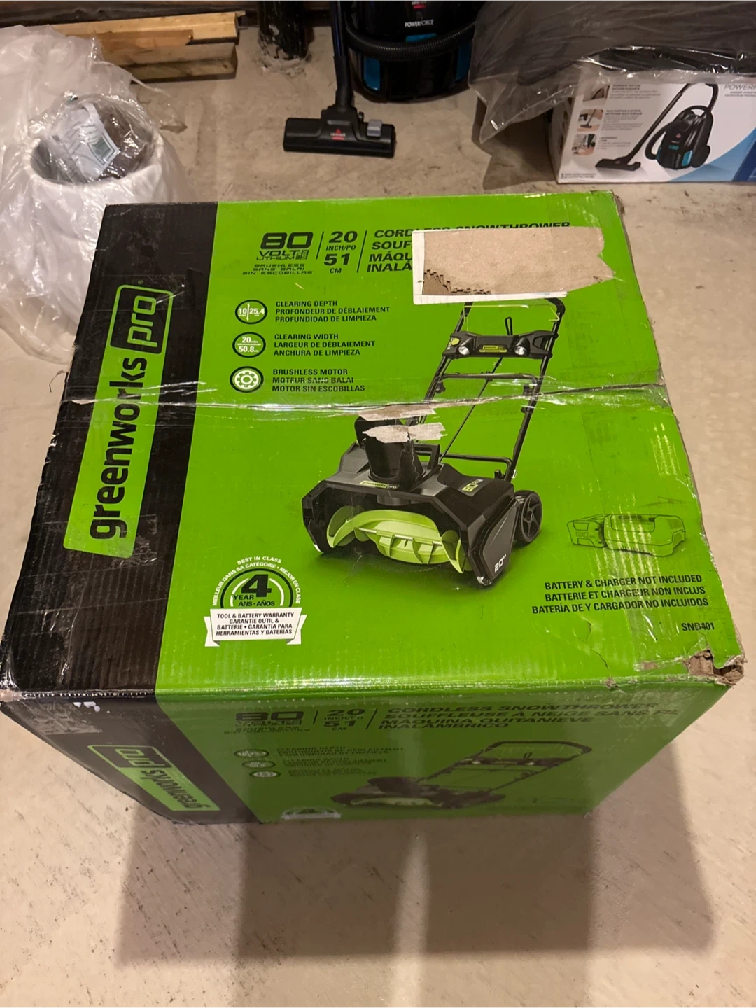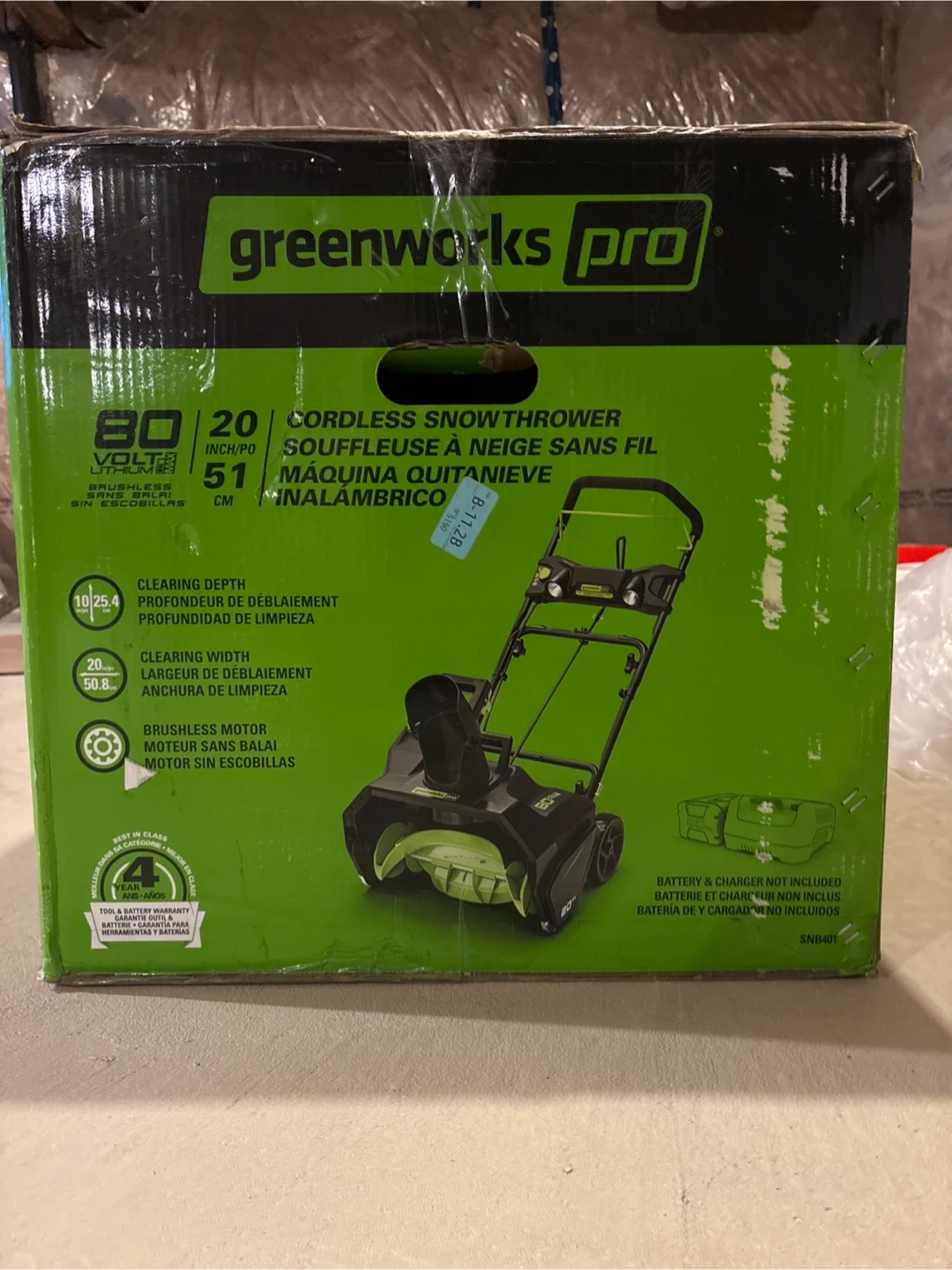 Selling a brand new Greenworks Pro 80V Cordless Snow Thrower. It's still in the box and has never been used. Features include: