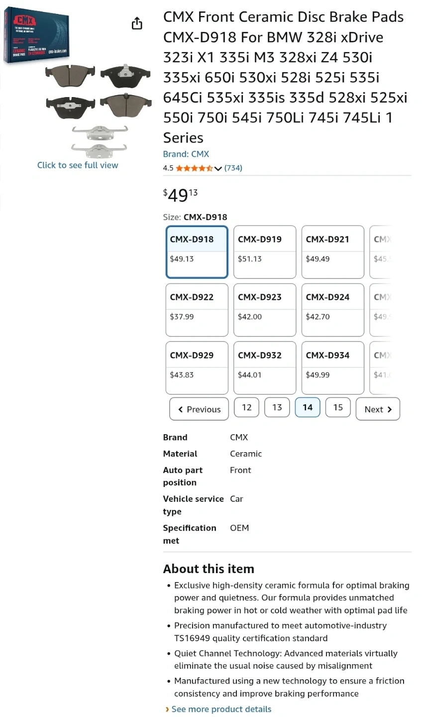 BMW CMX Ceramic Brake Pads - NEW!!!