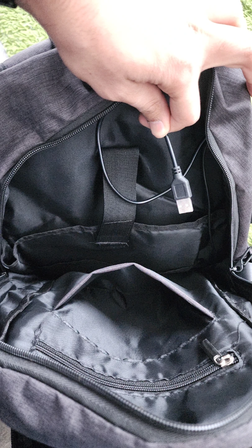 β CONVENIENT USB PORT&HEADPHONE JACK DESIGN - The usb charging backpack with built in USB charger outside and built in charging cable inside,this usb backpack offers you a more convenient way to charge your phone while walking. Please noted that this backpack doesn't include the power bank itself, usb charging port only offers an easy access to charge.A hole for headphone outside gives easy access to Earphone usage.You can listen to your favorite music on the go hands-free.