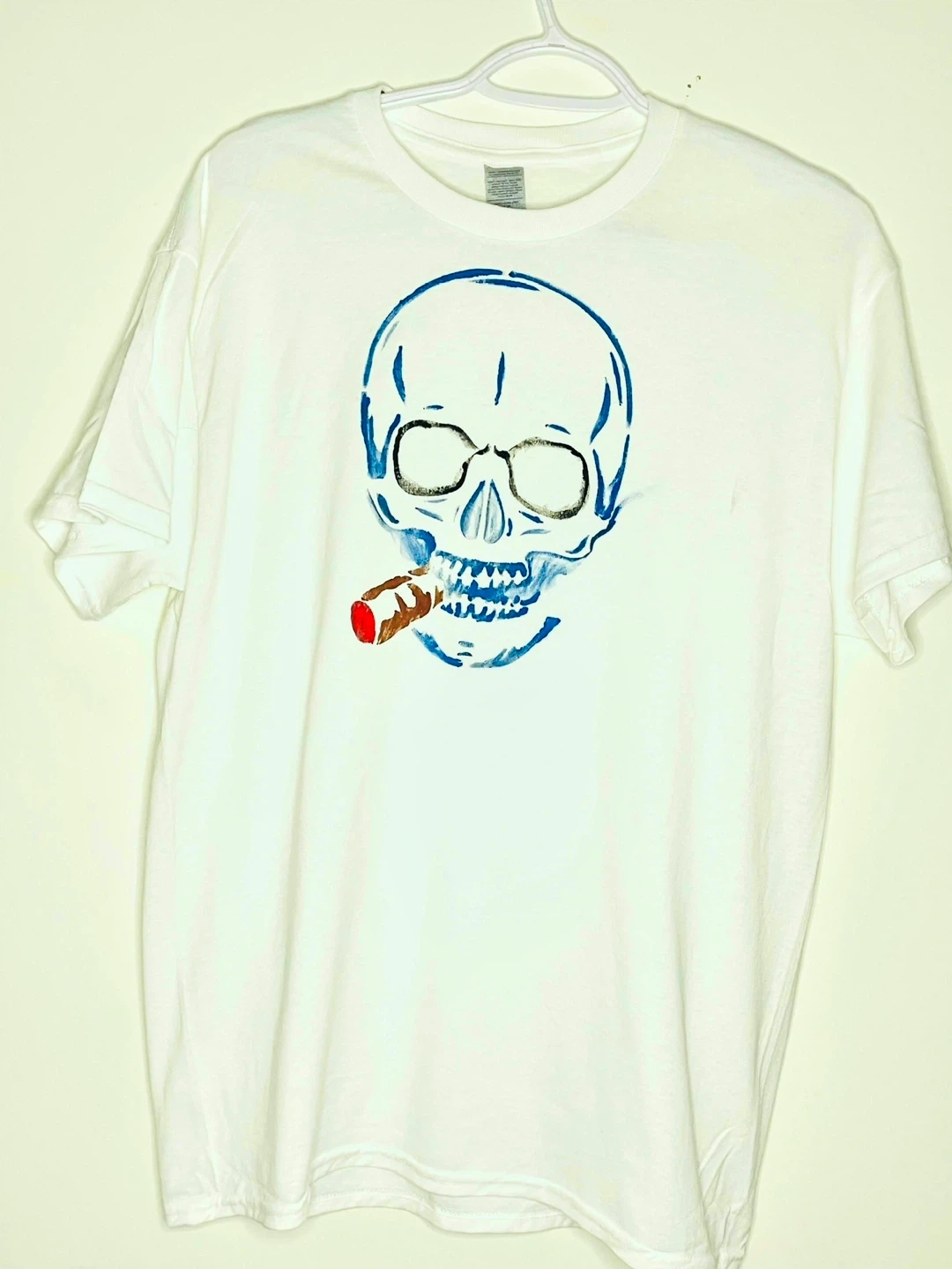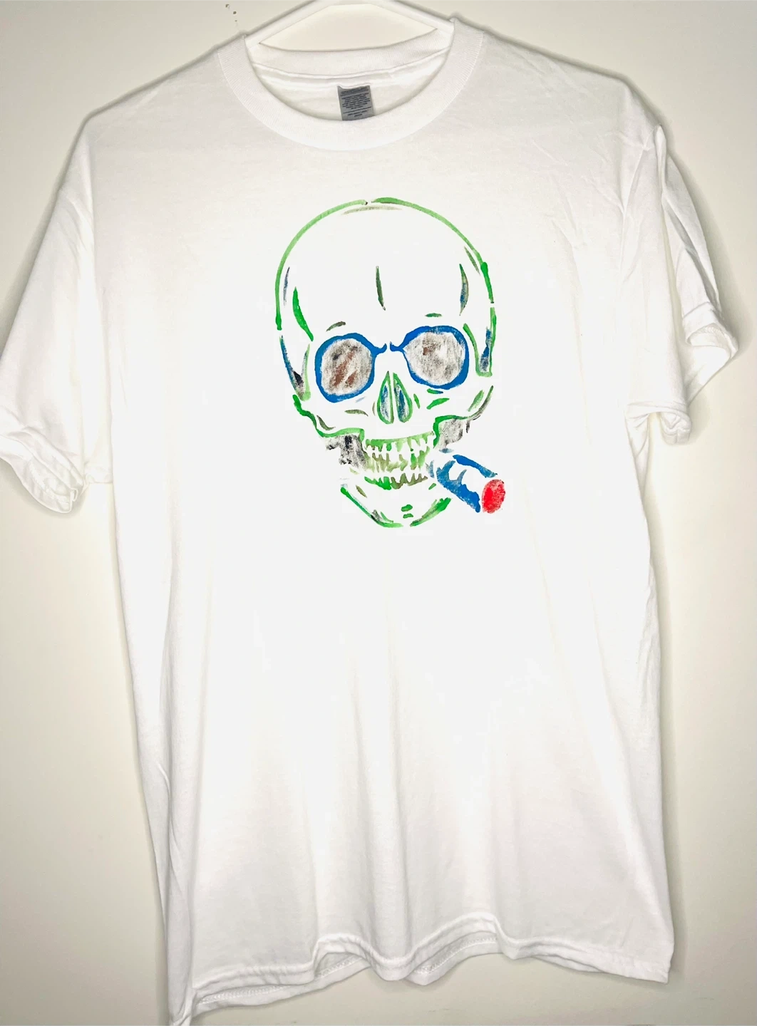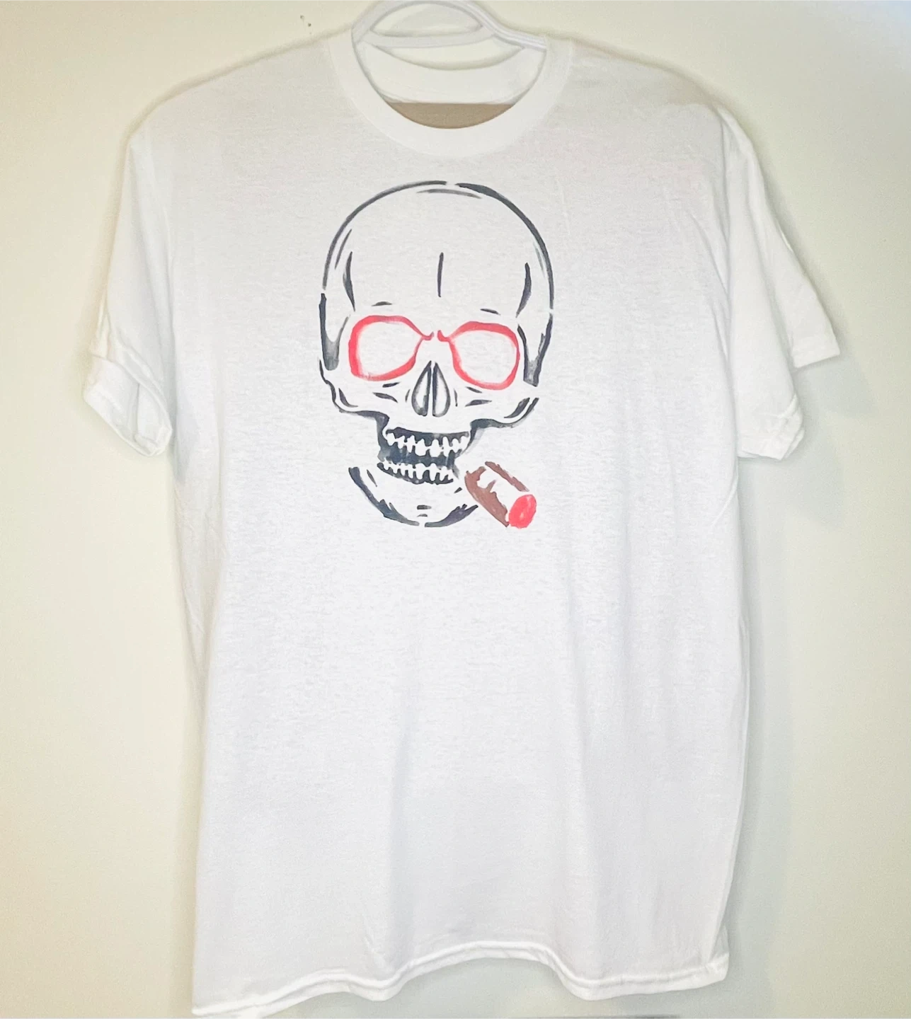 Cool white t-shirt with a unique skull graphic! Perfect for adding a bit of edge to your wardrobe. Check out the pics for the different colour skull designs!