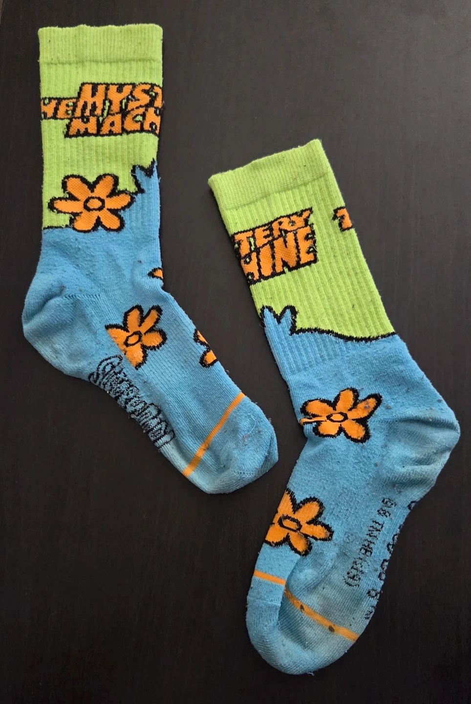 Selling two pairs of socks! One pair features the Gryffindor house crest from Harry Potter, and the other pair has a Scooby Doo Mystery Machine design. Both are in good condition. Unisex
