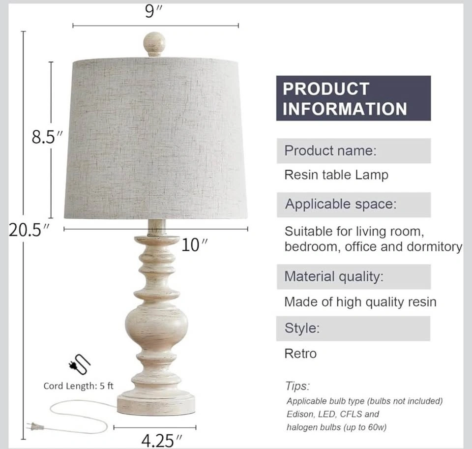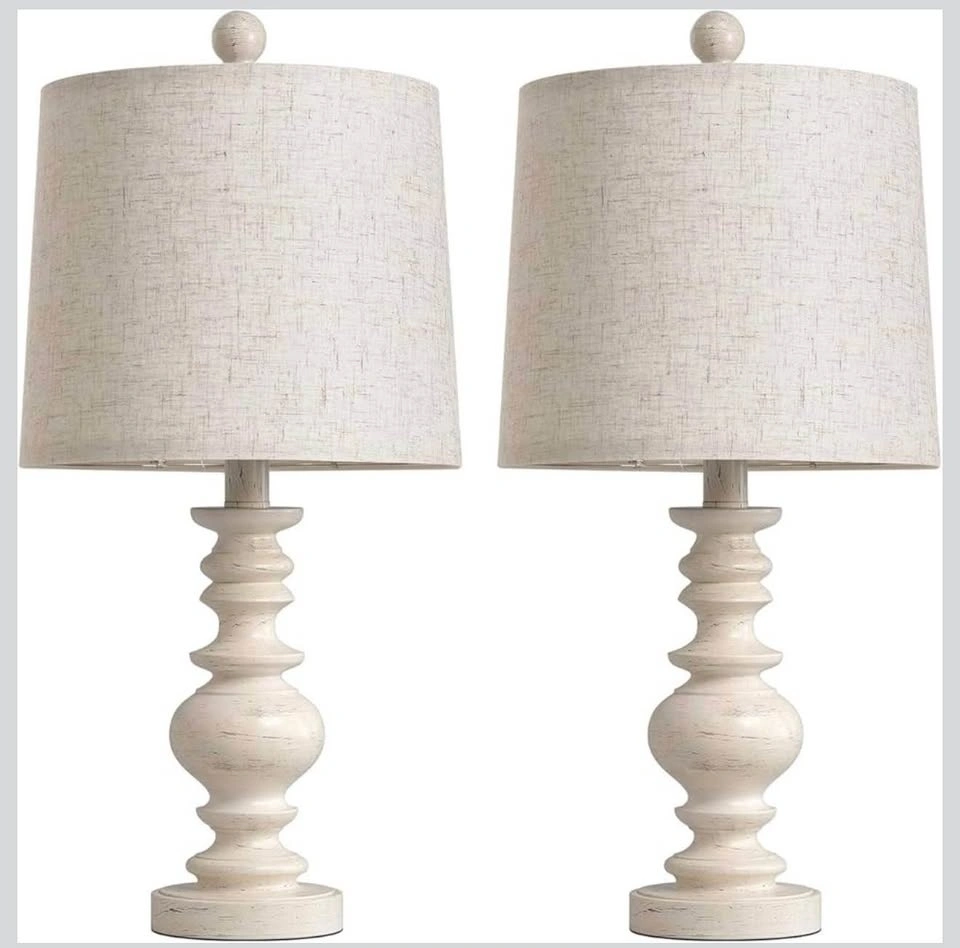 BOBOMOMO Tradition 20.5" Rustic Table Lamp Set of 2 for Living Room Farmhouse Bedside Desk Lamps Bedroom Nightstand Vintage Lamps Linen Washed