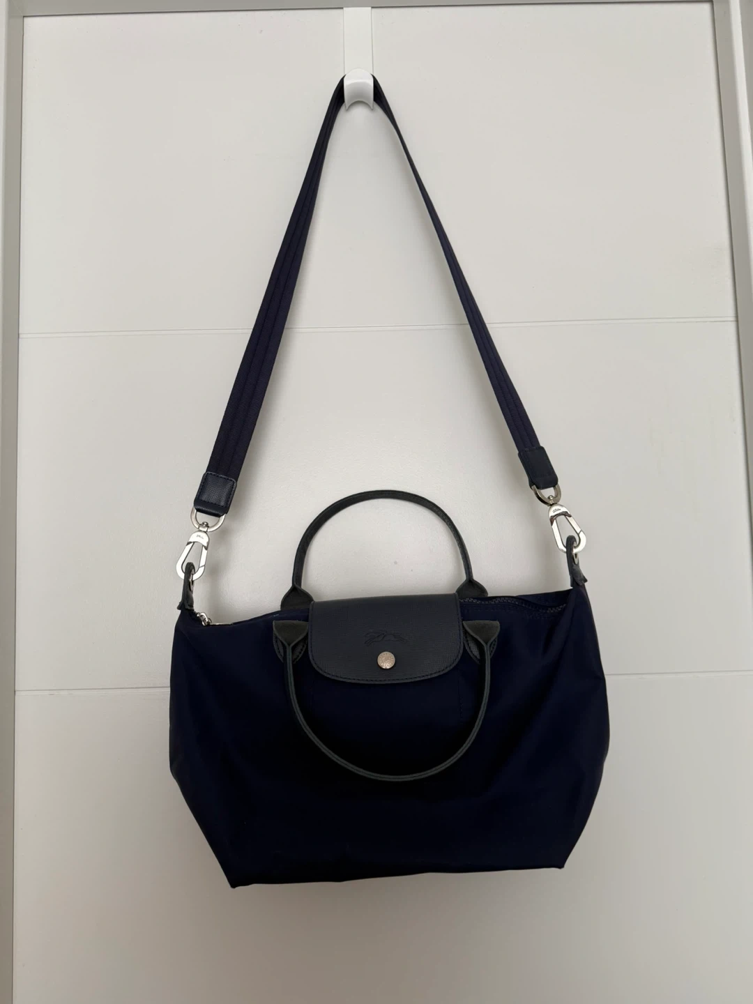 Selling a Longchamp Le Pliage crossbody bag in navy. It's in great condition and ready for a new owner! This bag is perfect for everyday use, whether you're running errands or heading to work. The Le Pliage line is known for being lightweight and durable, making it a practical choice. The navy colour is classic and versatile, easily pairing with any outfit