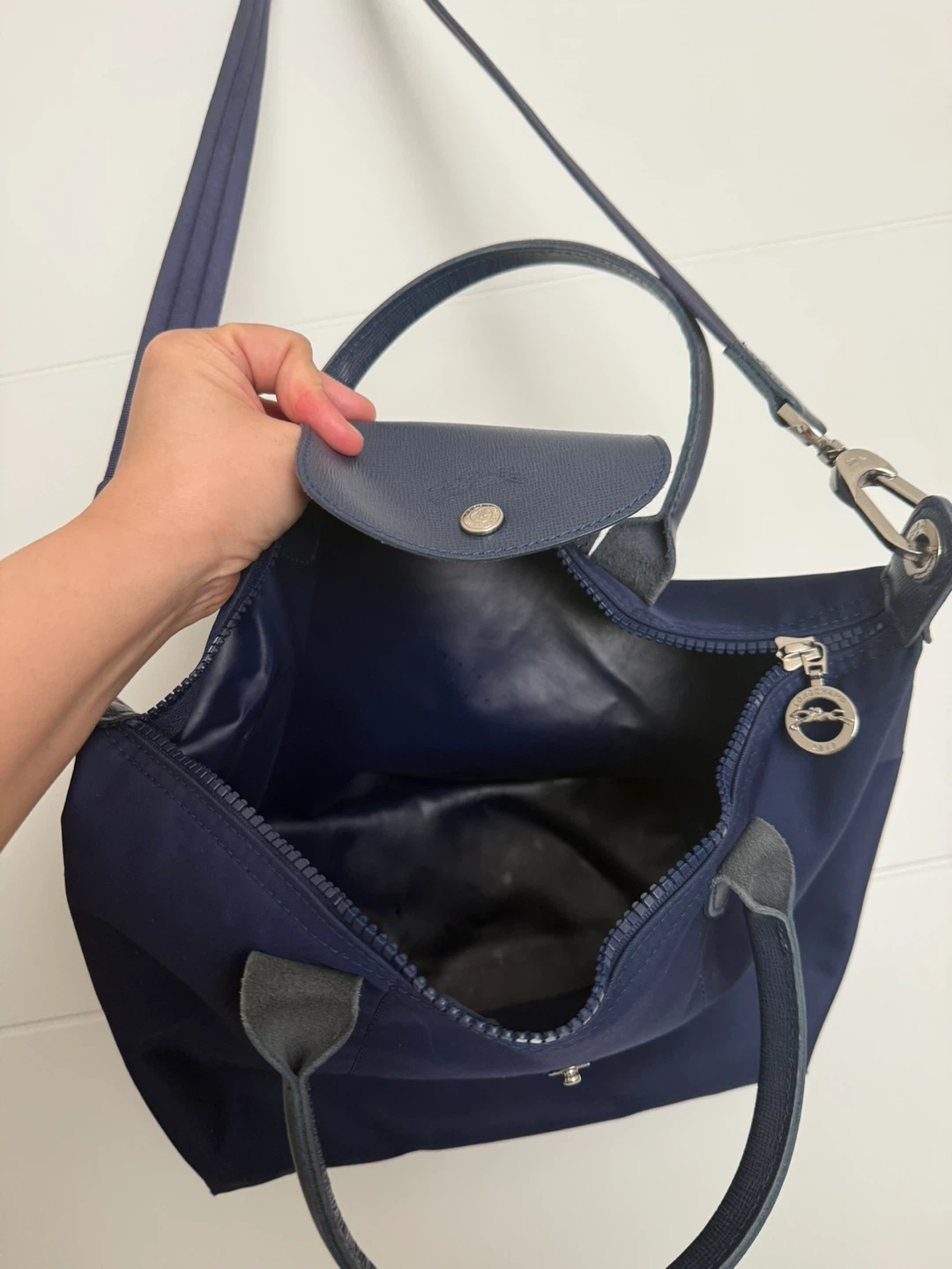 Selling a Longchamp Le Pliage crossbody bag in navy. It's in great condition and ready for a new owner! This bag is perfect for everyday use, whether you're running errands or heading to work. The Le Pliage line is known for being lightweight and durable, making it a practical choice. The navy colour is classic and versatile, easily pairing with any outfit