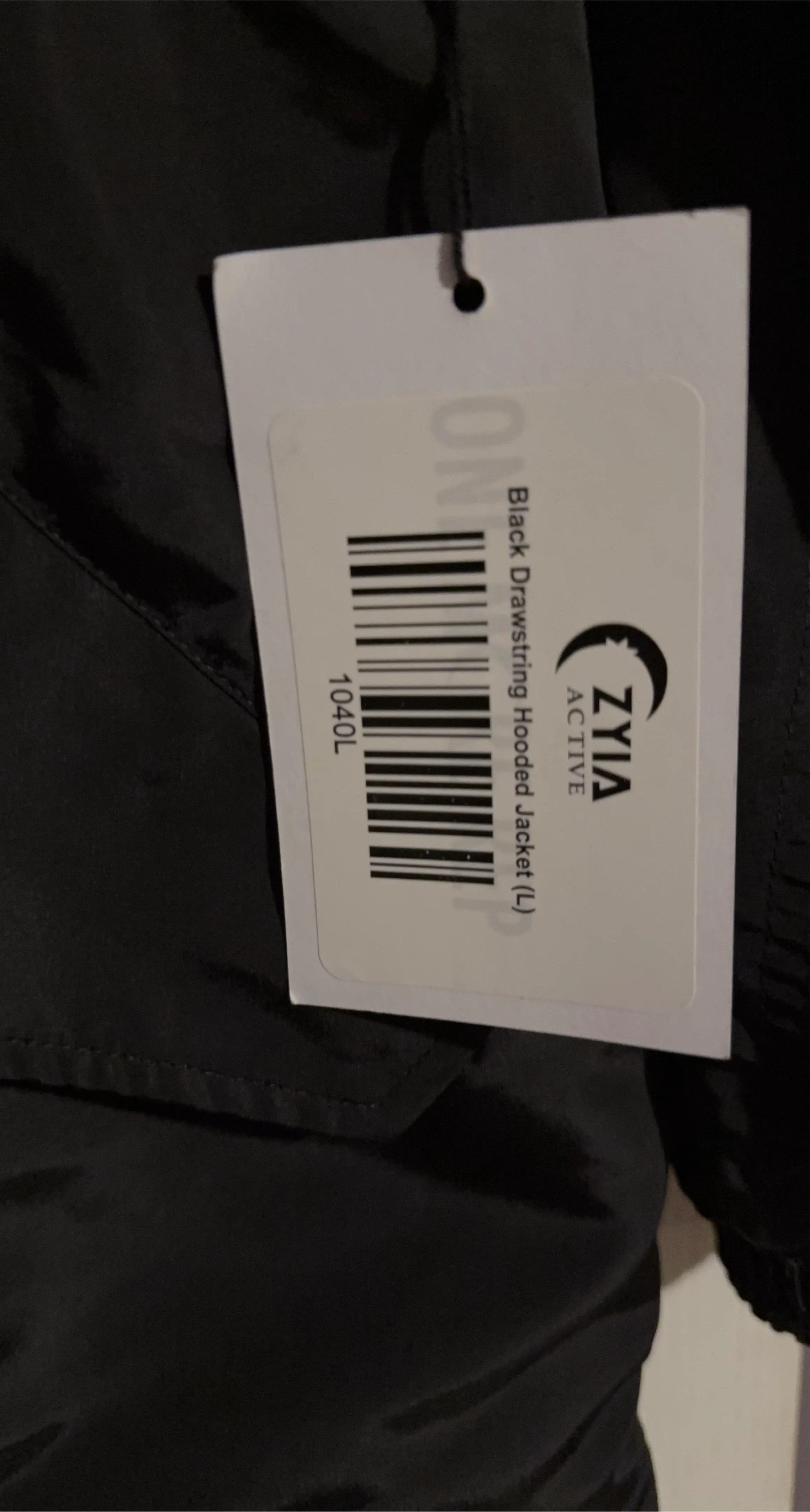 Selling a Zyia Active black drawstring hooded jacket in size large. It's in great condition and ready for a new owner!