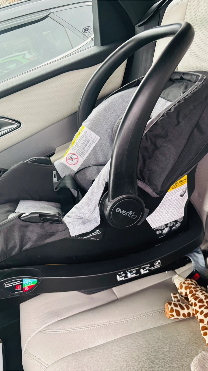 Selling an Evenflo infant car seat in great condition! It's a stylish grey and black colour, perfect for keeping your little one safe and comfy on the go