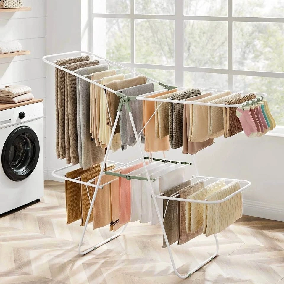 This foldable, free-standing laundry airer is perfect for apartments, bedrooms, laundry rooms, or balconies.