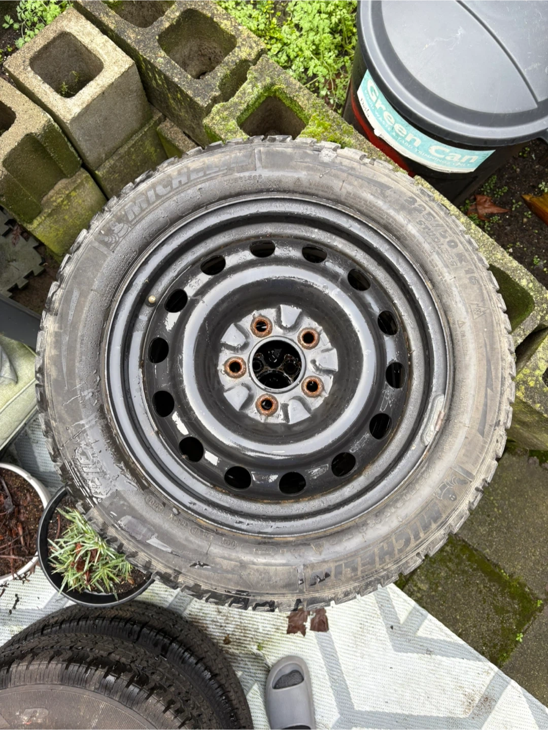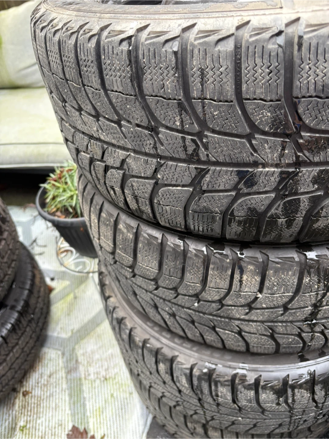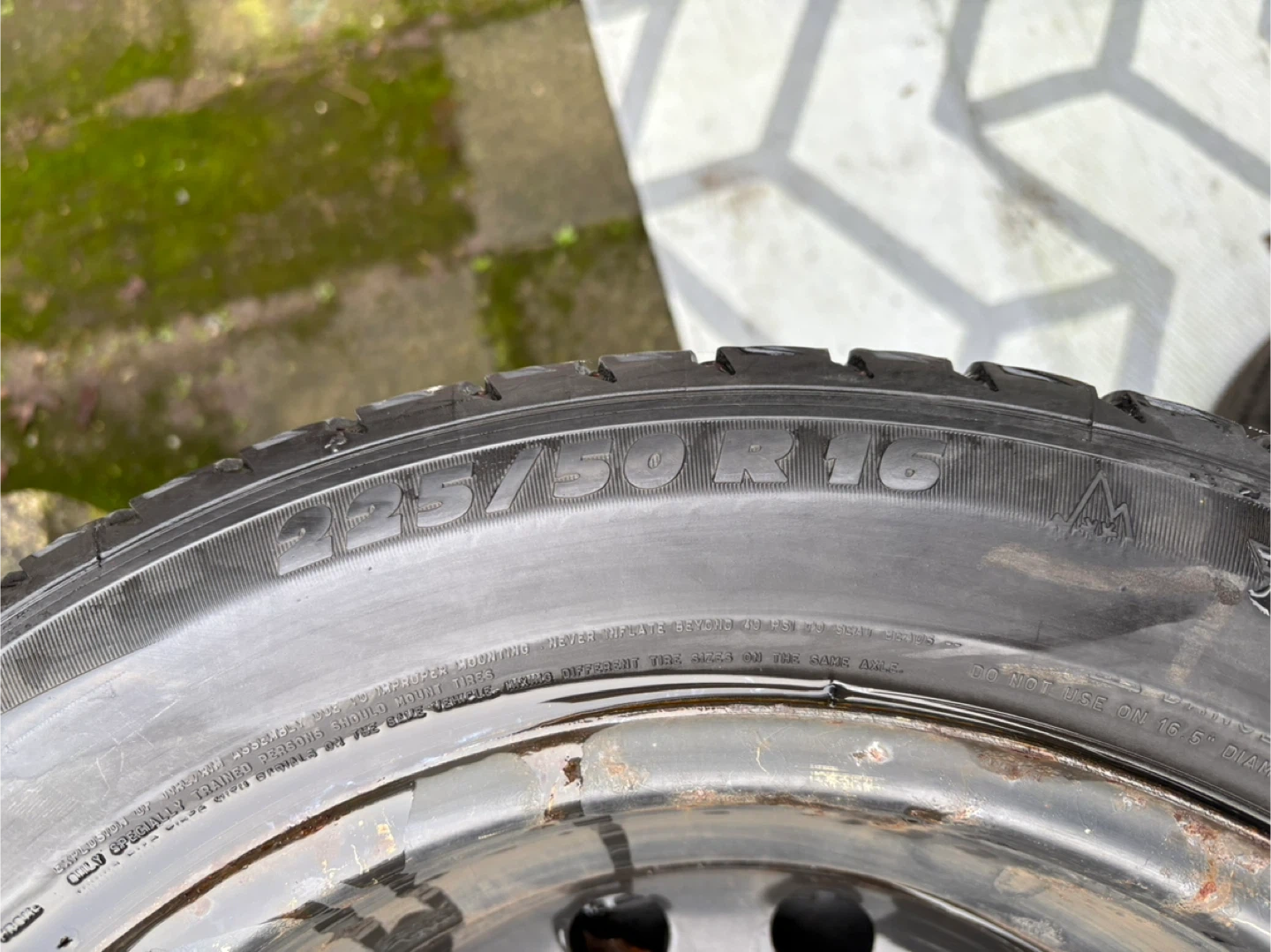 size 225/50/R16. They have some life left. A season or two at least. Ready to keep you safe on the icy roads.