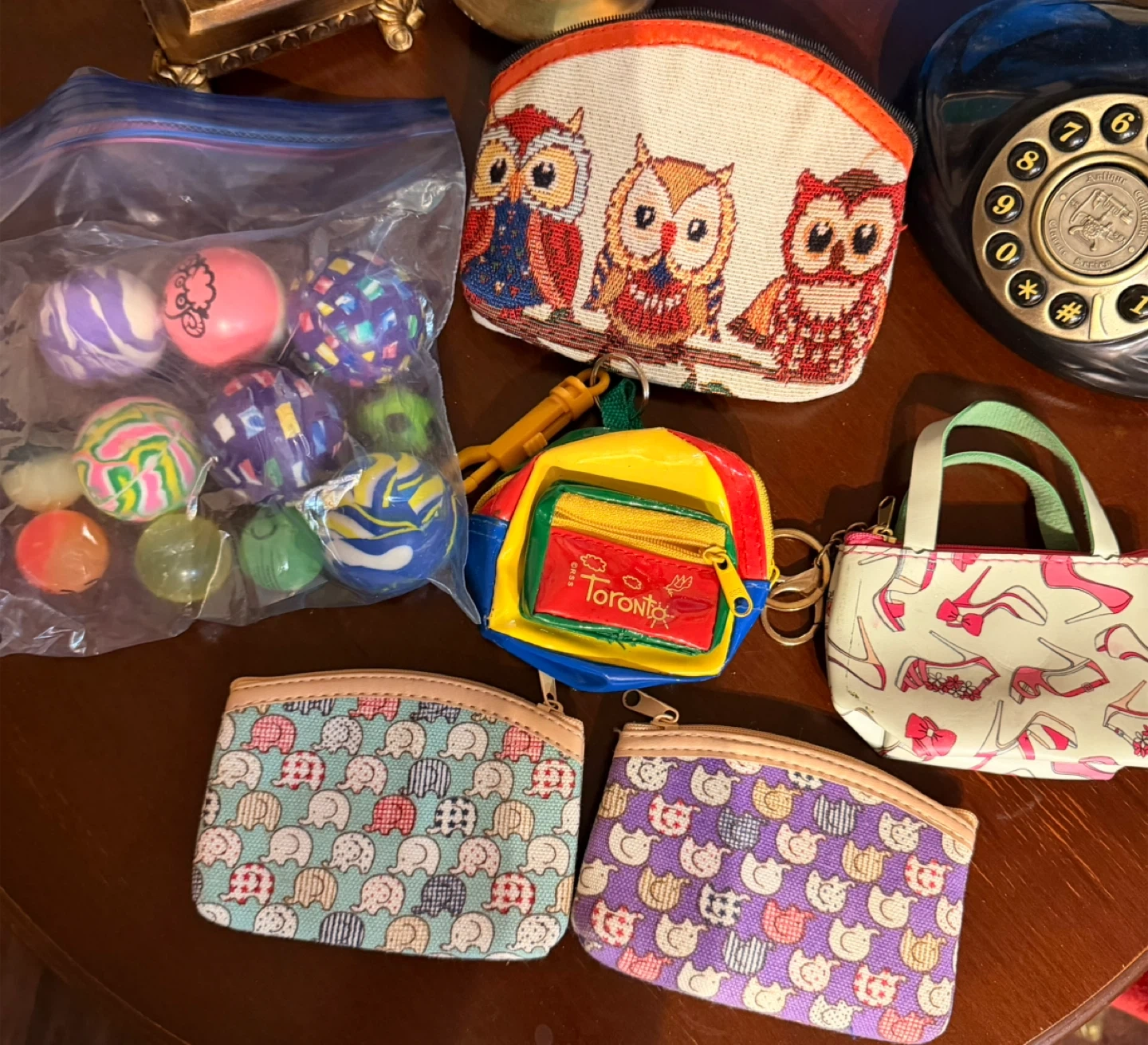Selling a collection of cute coin purses and bouncy balls! There's a variety of styles and designs to choose from. Perfect for adding a little fun to your everyday life