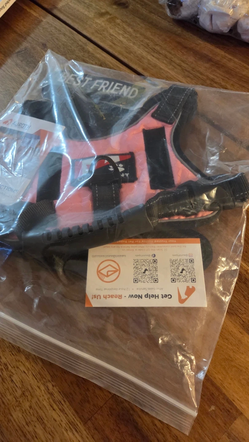 This is new dog harness/vest, just tried on but don't fit our dog. We had it as extra, but won't need it anymore. Easy to put and adjust. Size is S (18-35 lbs dog). Original price is $42, so save $$ and please don't ask for a lower price.