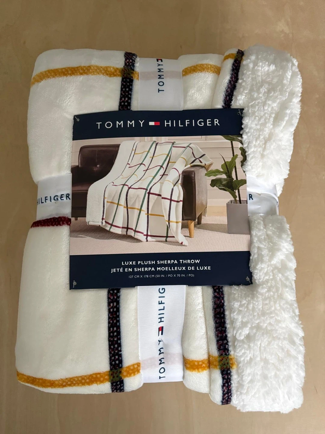Selling a brand new Tommy Hilfiger Luxe Plush Sherpa Throw! It's super soft and cozy. The throw measures 127 cm x 178 cm (50 in x 70 in). Perfect for snuggling up on the couch!